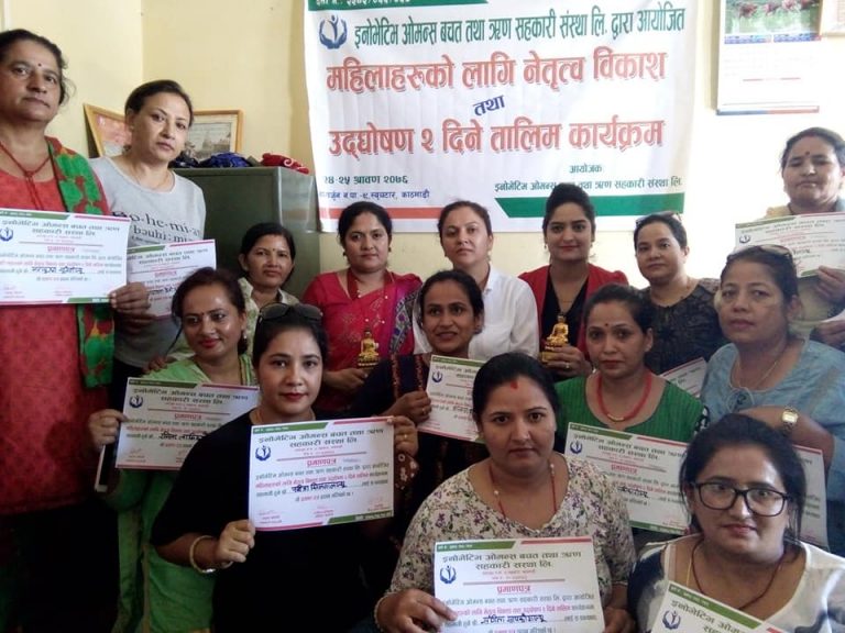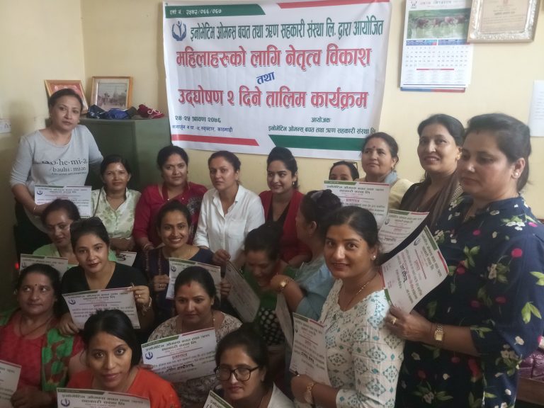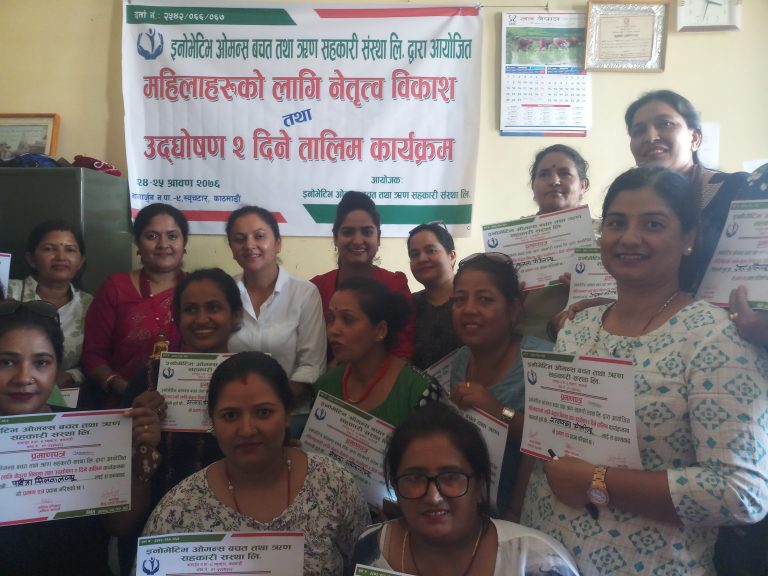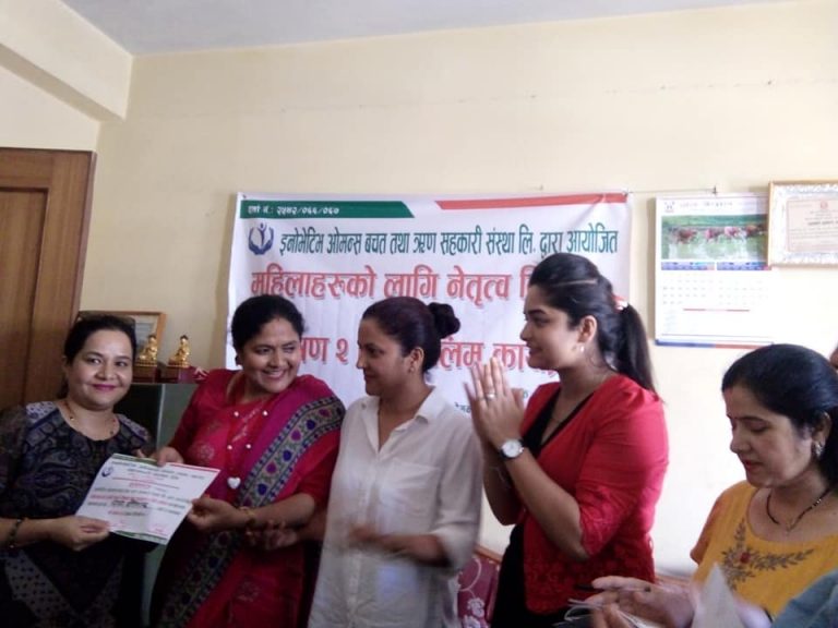 इनोभेटिभ ओमन्स बचत तथा ऋण सहकारी संस्था लि द्वारा आयोजित महिलाहरुको लागि नेतृत्व विकाश र उद्घोषण तालिम सम्पन्न भएको छ ।