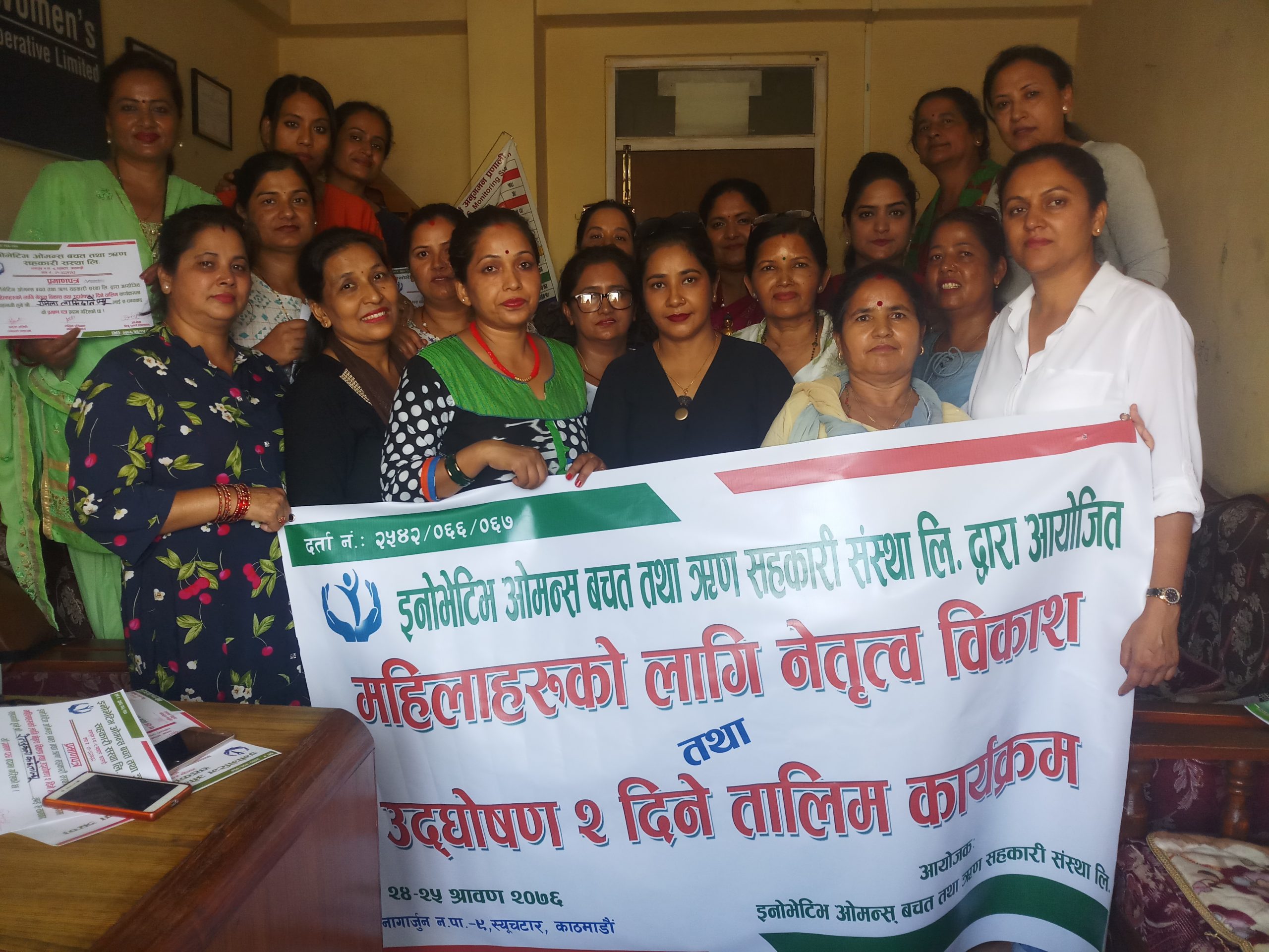 इनोभेटिभ ओमन्स बचत तथा ऋण सहकारी संस्था लि द्वारा आयोजित महिलाहरुको लागि नेतृत्व विकाश र उद्घोषण तालिम सम्पन्न भएको छ ।