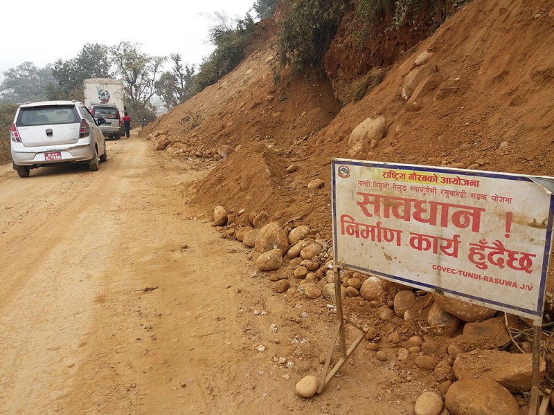 पासाङल्हामु राजमार्गअन्तर्गत पर्ने उक्त सडक सुधारका लागि गत साउन महीनामा सडक विभागअन्तर्गत उपकरण महाशाखाबाट रसुवा पठाइए पनि ती उपकरण अफिस समयमा मात्र गुड्ने र भन्सार शुल्क तिरेर आएका सिलबन्दी मालबाहक कन्टेनर डिब्बा सधैँ हिलो पार गर्न नसकेर हैरानी हुने गरेको चालकको गुनासो छ ।