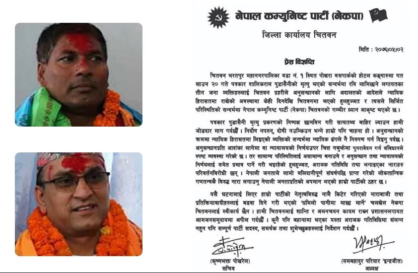 पत्रकार शालिकराम पुडासैनीले साउन २० गते चितवनको एक होटलमा आत्महत्या गरेका थिए । पुडासैनीले आत्महत्याअघि रेकर्ड गरेको भनिएको भिडियोका आधारमा प्रहरीले आत्महत्यामा दुरुत्साहन मुद्धामा अनुसन्धान गर्न टेलिभिजन प्रस्तोता रवि लामिछाने, युवराज कँडेल र नर्स अस्मिता कार्कीलाई पक्राउ गरेको छ ।