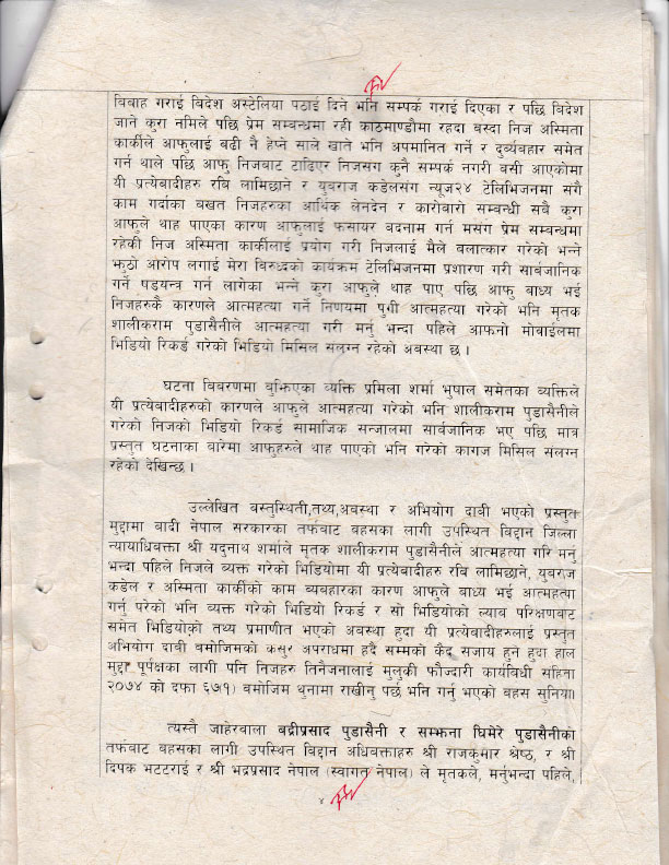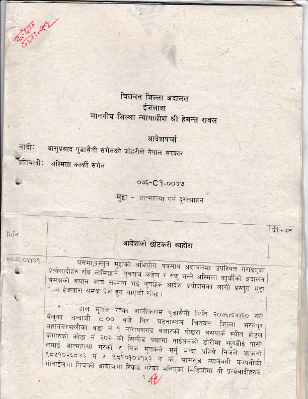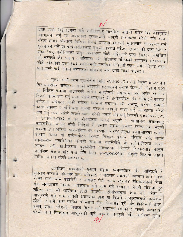 काठमाडौं– जिल्ला अदालत चितवनले पत्रकार शालिकराम पुडासैनीले मृत्युअघि रेकर्ड गराएको भिडियोलाई शंकाको दृष्टिले हेरेको छ ।