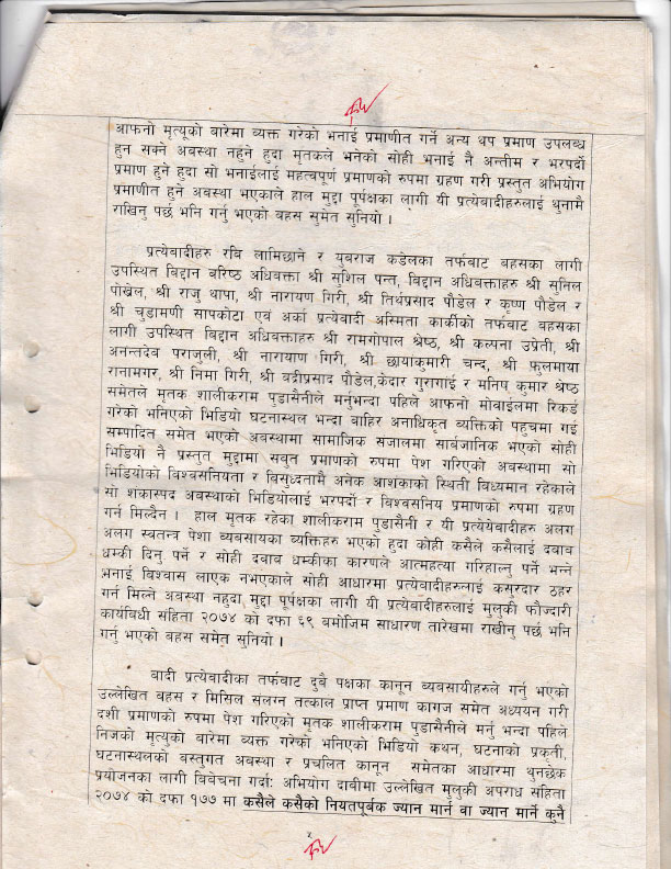 यद्यपि प्रविधिको यो जमानामा अरु कुनै प्रविधिको प्रयोग गरेर एक्कलैले भिडियो खिचेको हुनसक्नेतर्फ भने अदालत मौन छ ।