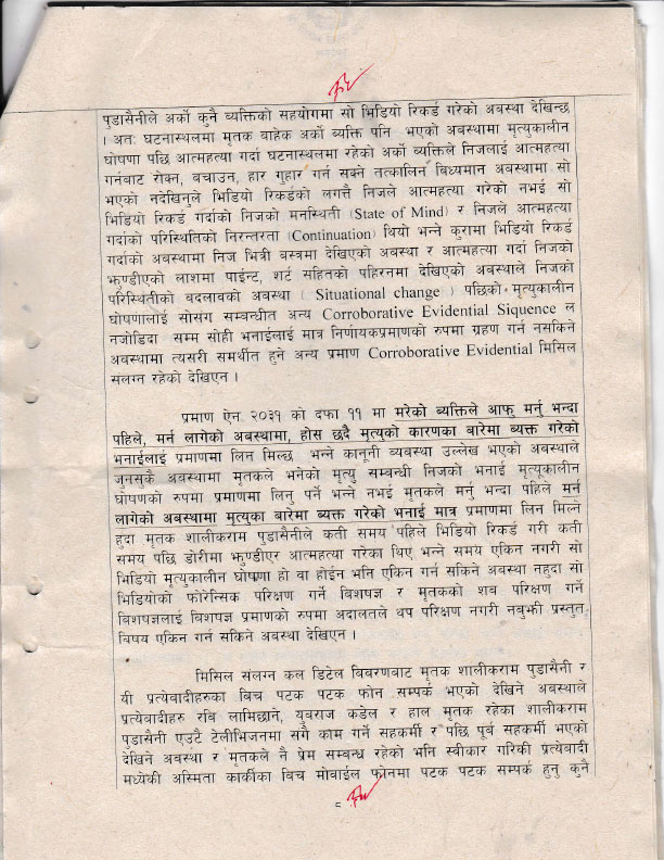 अदालतको आदेशमा मर्नुअघि परिवारको सदस्यसँग माफी माग्दै शालिकरामले दुई जोड्नुले उनी एक्लैले भिडियो खिचेको मान्न नसकिने उल्लेख गरिएको छ । अदालतले पुडासैनिकले अर्को कुनै व्यक्तिको सहयोगमा सो भिडियो रेकर्ड गरेको अवस्था देखिएको ठहर गरेको छ ।