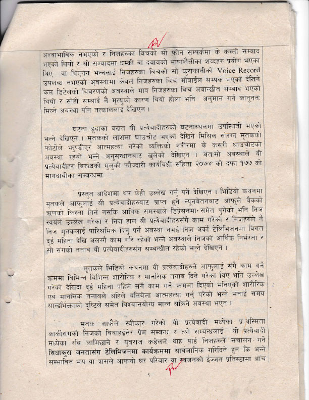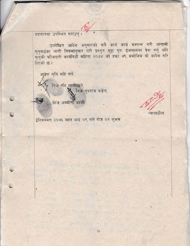 आदेशमा रवि लामिछाने, युवराज कँडेल र पुडासैनीका साथै पे्रमिका भनिएकी अस्मिता कार्कीबीच मोबाइलमा कुराकानी भइरहनु कुनै अस्वभावित नभएको तर कल रेकर्ड उपलब्ध नभएकाले के के कुराकानी भयो भन्नेमा आधारहरु नपाइएको उल्लेख गरिएको छ ।