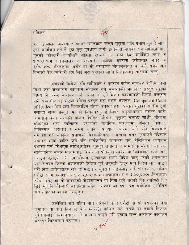 यद्यपि अश्मिता कार्की साधारण तारेखमा रिहा भएपनि लामिछाने र कँडेल विदेश जान परेको अवस्थामा अदालतको अनुमति चाहिने भएको छ भने मुद्दालाई प्रभावित हुनेगरी कुनै पनि माध्यमबाट बोल्न र प्रशारण गर्न नपाइने उल्लेख गरिएको छ।