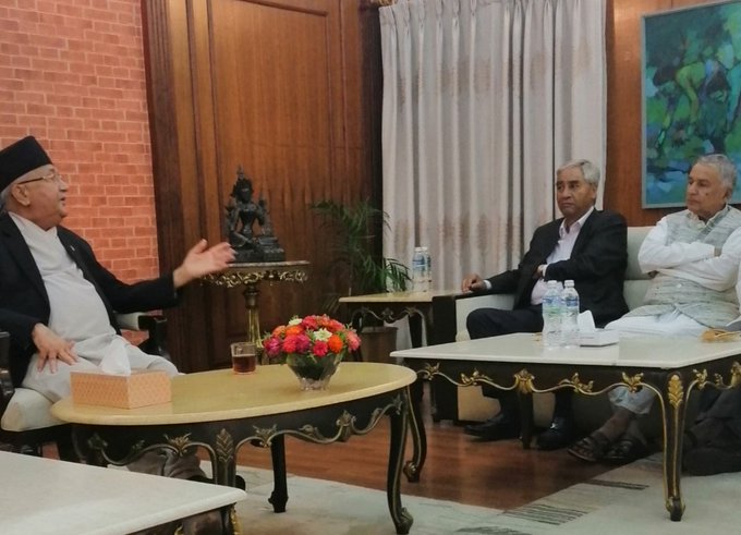 पछिल्ला घटनाक्रमबारे छलफल गर्न कांग्रेस सभापति शेरबहादुर देउवा आफैं समय लिएर आइतबार साँझ बालुवाटार पुगेका थिए । देउवासहितका ११ शीर्ष नेता छलफलमा सहभागी थिए । सत्तारूढ दलका तर्फबाट नेकपाका अध्यक्षसमेत रहेका प्रधानमन्त्री ओली, अध्यक्ष पुष्पकमल दाहाल, महासचिव विष्णु पौडेल र कानुनमन्त्री भानुभक्त ढकाल सहभागी थिए । प्रधानमन्त्री ओलीले सहमति जुटाउनकै लागि आफूले नागरिकता विधेयक प्रतिनिधिसभाको राज्य व्यवस्था समितिमा मतदान हुन नदिएको जानकारी कांग्रेस नेताहरूलाई गराएका थिए ।