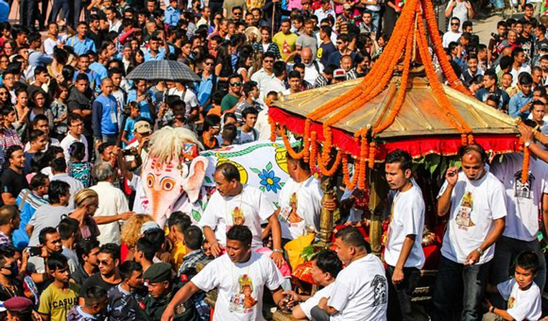 काठमाडौं । नेवारी समुदायको ठूलो जात्रा इन्द्रजात्रा अझै सकिएको छैन । रथयात्रा, लाखेनाचहरु चलिरहेको छ । इन्द्रजात्रा शुरु भएदेखि नसकिँदासम्म विभिन्न देवीदेवता तथा भैरवको मूर्ति बाहिर निकालिएको छ ।