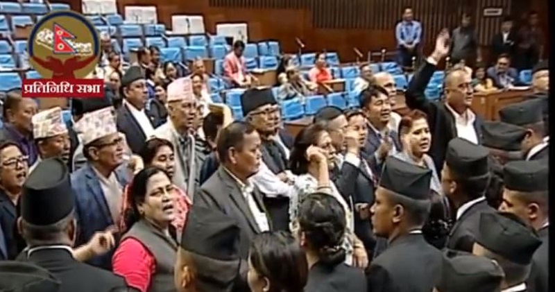 सांसद रोकाको अभिव्यक्ति पछि नेपाली कांग्रेसका सांसदहरुले बोल्न समय मागेका थिए । तर सभामुखले समय नदिएपछि उनीहरुले वेल घेराउ गरि नाराबाजी गरेका हुन् । कांग्रेस सांसदहरुले “संसदमा निश्पक्षता कायम गर , दोषीलाई कारवाही गर । राज्य आतंक बन्द गर । ” भन्दै झण्डै आधाघण्टा नाराजाबी गरेका थिए । नाराबाजी जारी रहेपछि सभामुख कृष्ण बहादुर महराले आगामी असोज १ गते विहान ११ बजे सम्मका लागि स्थगित गर्नुभएको थियो ।