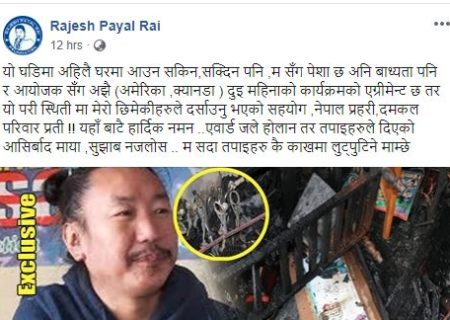 राजेश पायलको घरमा आगलागी, भन्छन् : अवार्ड जले होलान् तर तपाईहरुको आशिर्वाद र माया नजलोस्