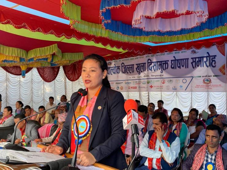 सामाजिक उत्थानको क्षेत्रमा निकै ठूलो उपलब्धि हासिल भएकाले राष्ट्रिय उत्सवकै रुपमा मुलुकलाई खुला दिशामुक्त राष्ट्र घोषणा गर्ने निर्णय गरिएको खानेपानी मन्त्री विना मगरले जानकारी दिनुभयो । उहाँले सो अभियानलाई सफल बनाउन सबै मन्त्रालय, सम्वद्ध पक्ष र सर्वसाधारणलाई पनि अपिल गर्नु भयो ।