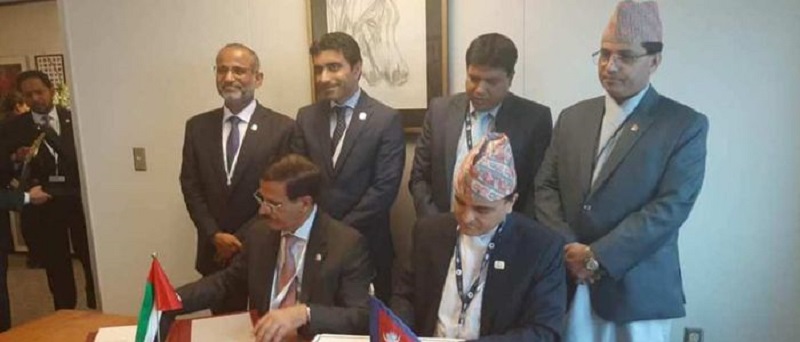 यूएई र नेपालबीच हवाई सम्झौता : भट्टराई र सइदले गरे हस्ताक्षर