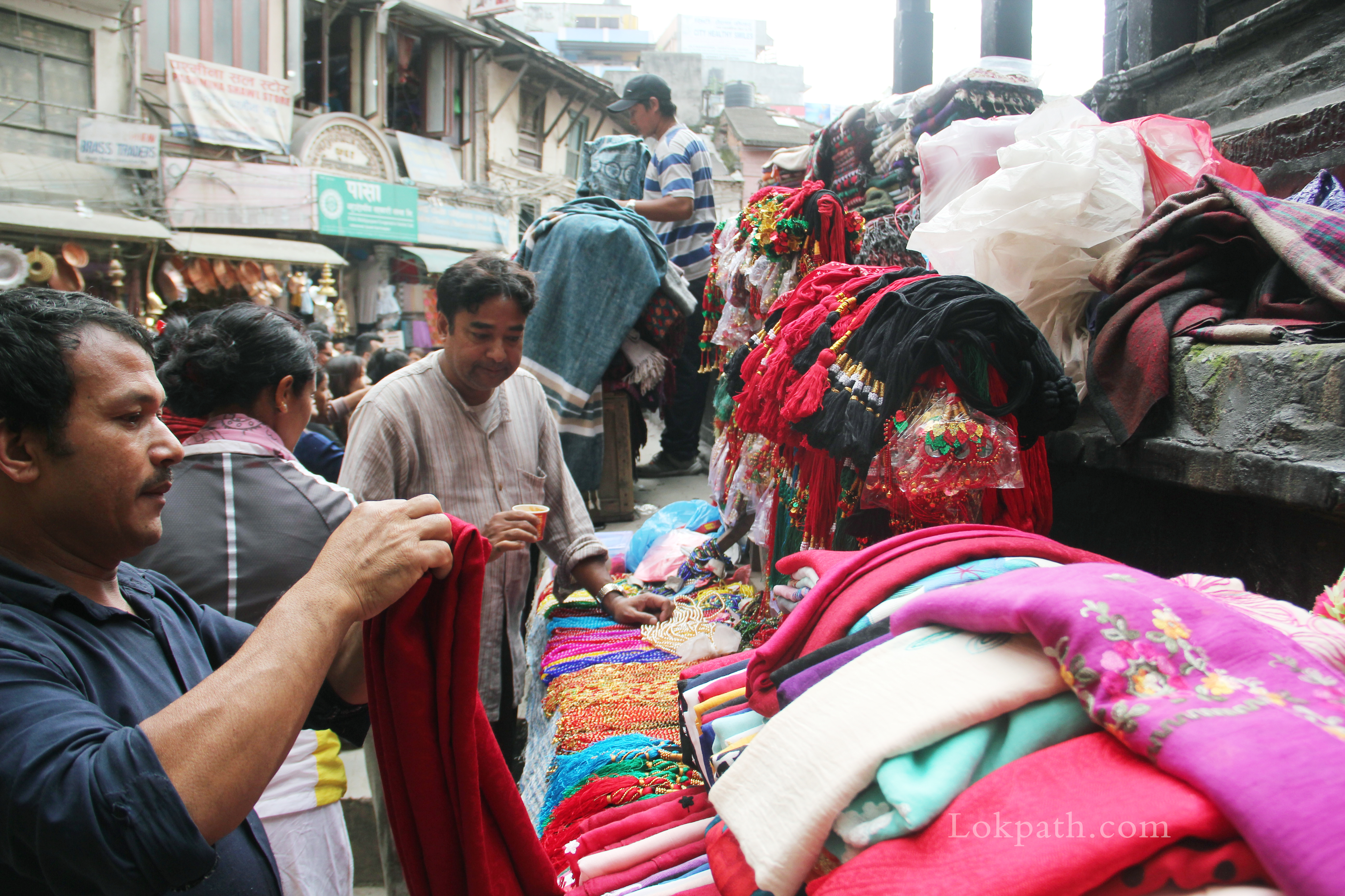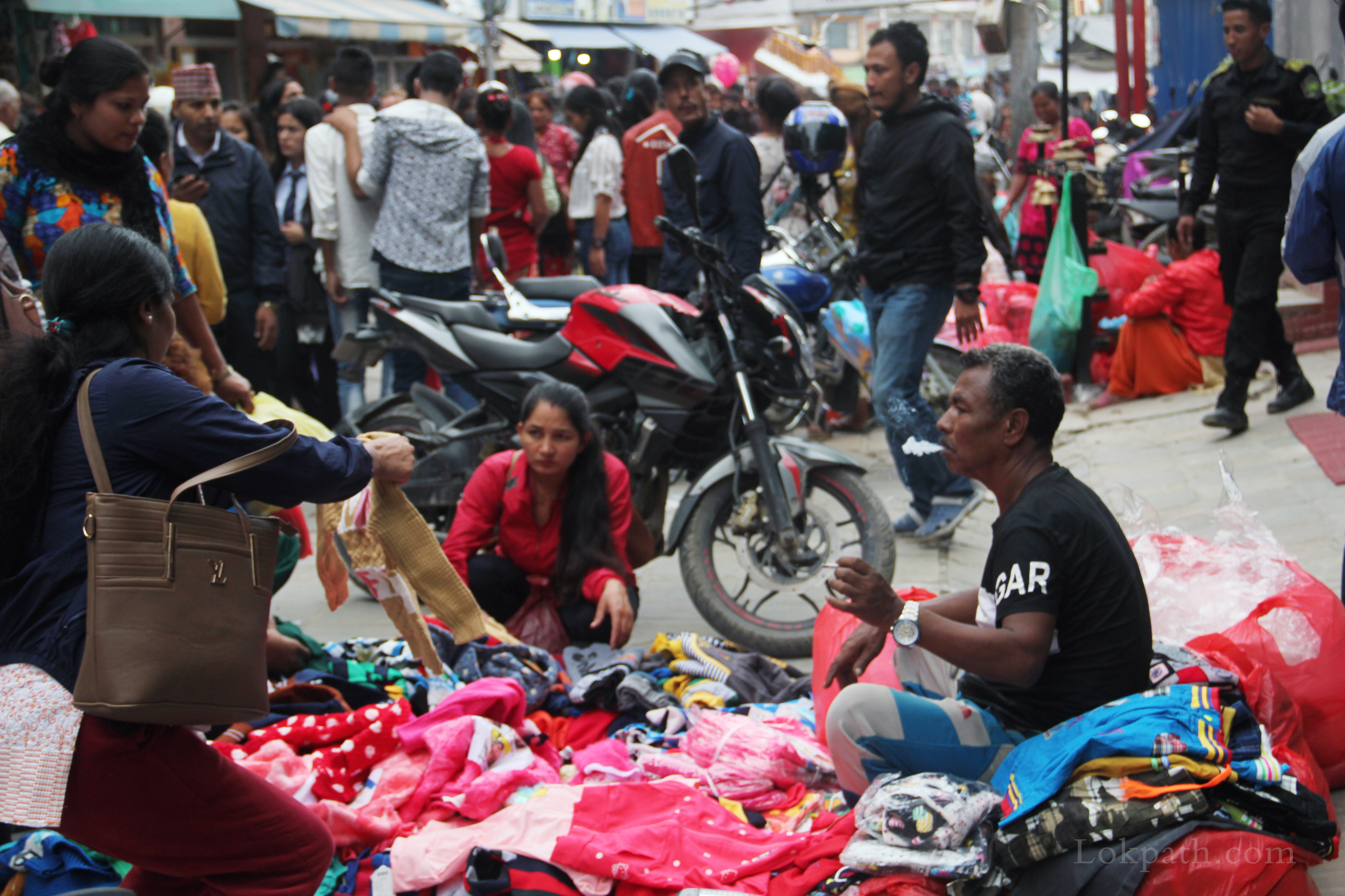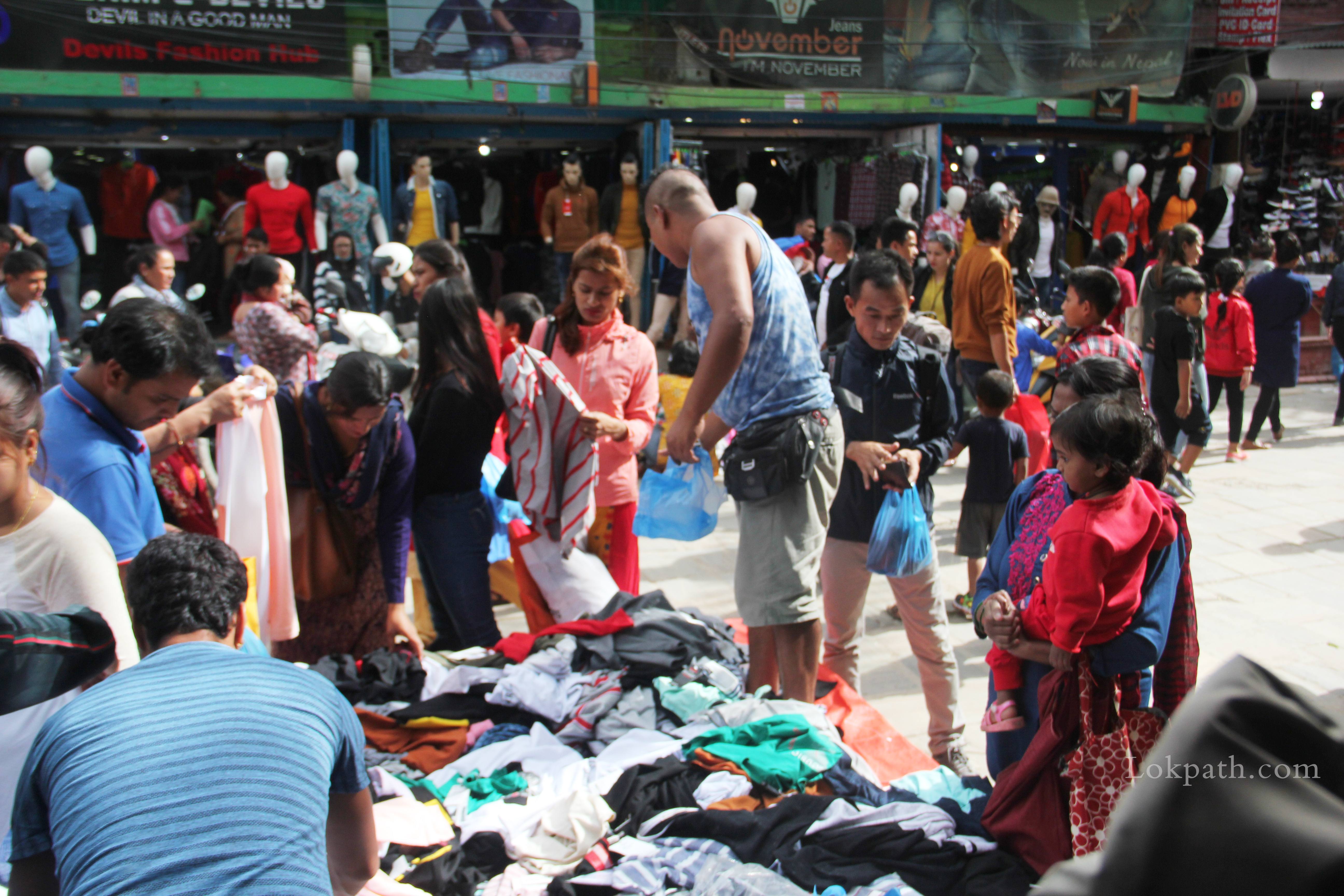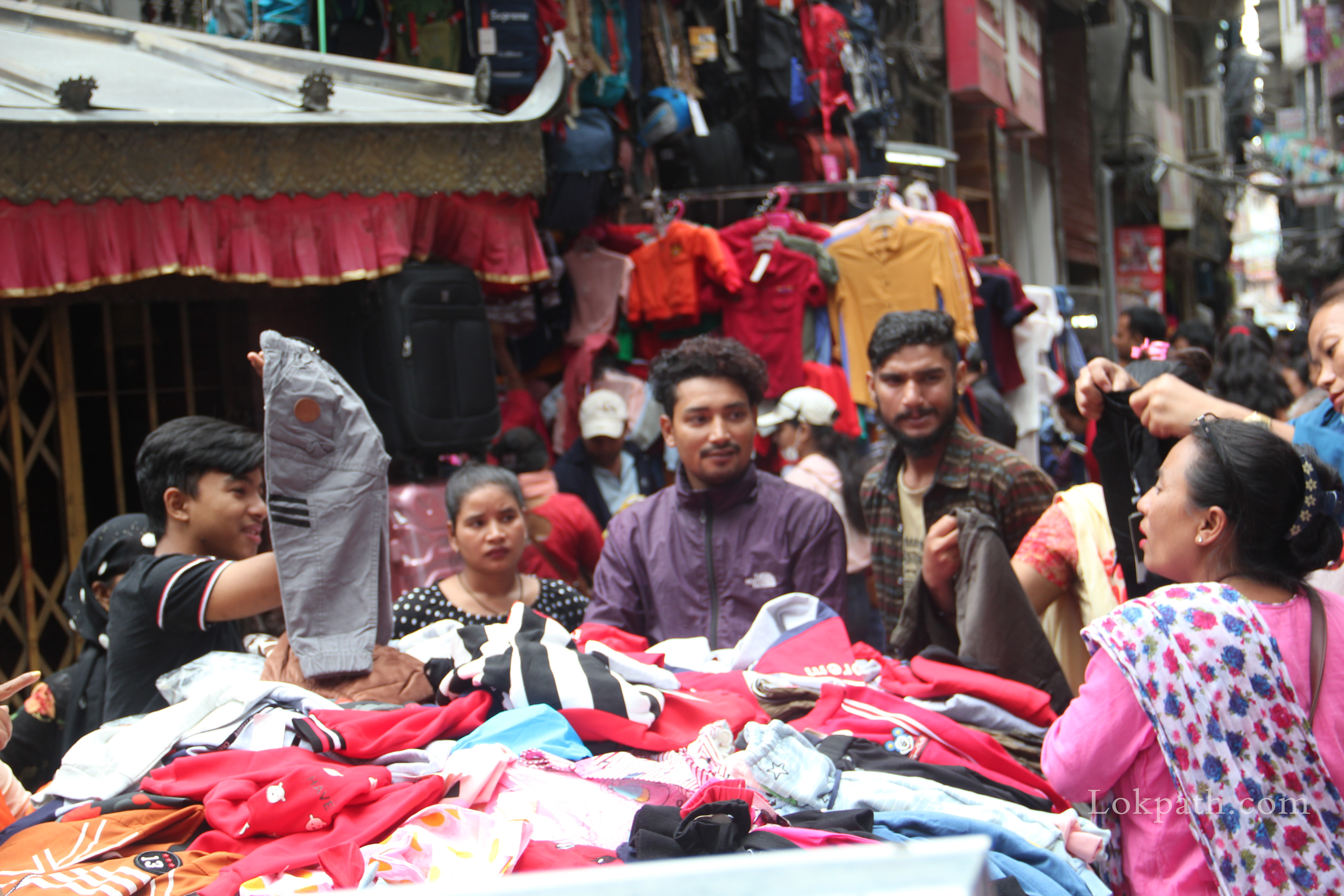 इन्द्रचोक असन, बसन्तपुर क्षेत्रमा लुगा पसल राख्दै आएका व्यापारीहरुलाई बोल्ने फुर्सद समेत छैन । खासगरी बालबच्चालाई दशैँमा नयाँ कपडा लगाइदिने प्रचलन र दशैँको उल्लासले निम्नवर्गीय परिवारलाई पनि उत्तिकै छुने भएकाले यतिबेला कपडा किन्न आउनेको सङ्ख्या धेरै भएको व्यापारीहरु बताउँछन् ।