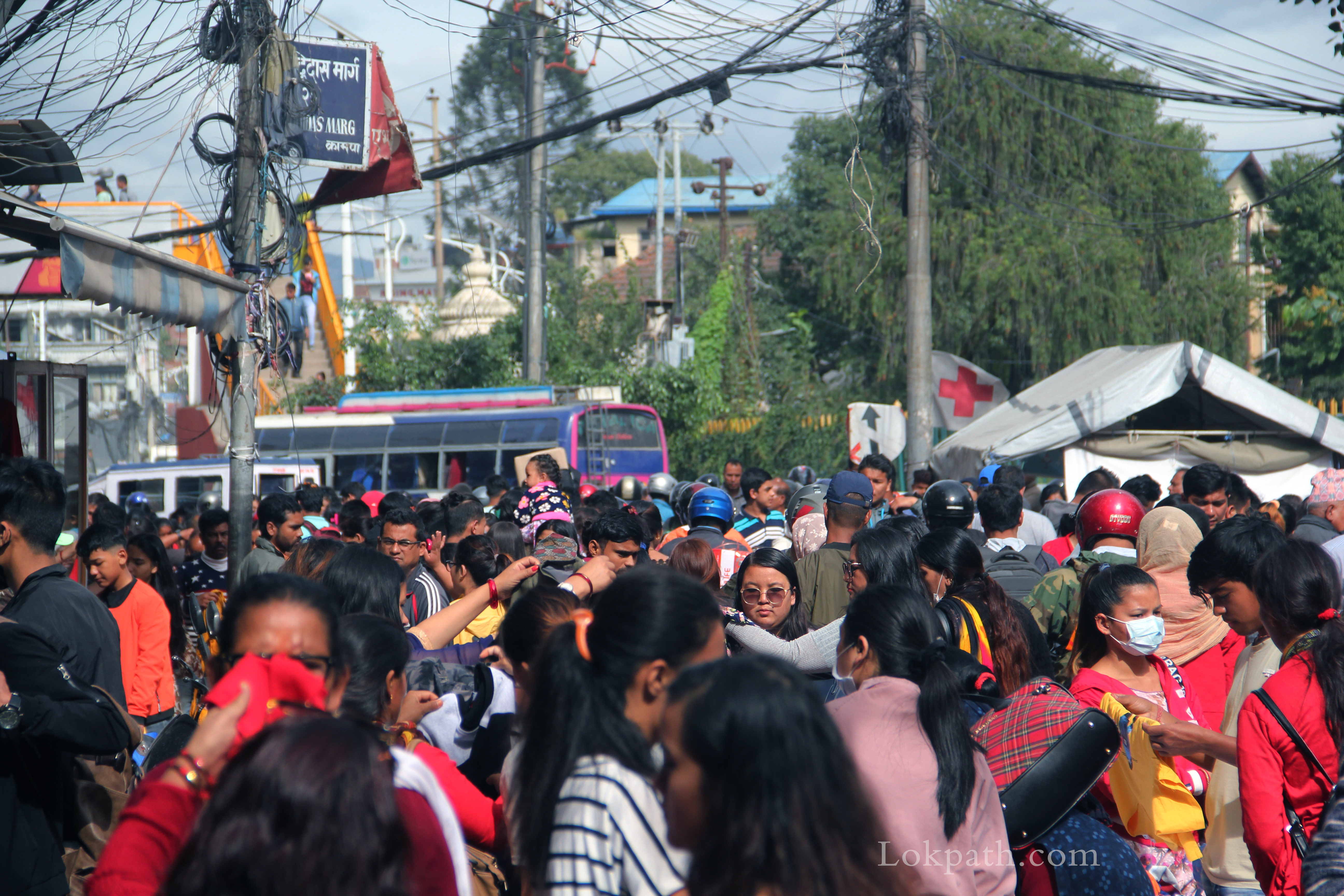 काठमाडौं । यसै पनि मान्छेको भीड हुने ठाउँ हो काठमाडौँको असन र इन्द्रचोक क्षेत्र । इन्द्रचोक, असन, बसन्तपुर क्षेत्रमा दशैँको रौनकले मान्छेको बाक्लो चहलपहल बनाइदिएको छ ।