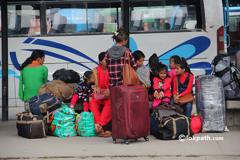 काठमाडौं । दशैँ नेपालीहरुको घर आँगनमा आइसकेको छ । त्यससँगै दशैँ मनाउनको लागी राजधानी शहर काठमाडाैं बाहिर जानेको क्रमपनि त्यतिकै बढेको छ । असोज ५ गतेबाट यातायात व्यबस्था बिभागले अग्रिम टिकट बुकिङ्गको लागी खुला गरेसँगै राजधानी छाड्ने क्रम पनि बढेको छ ।