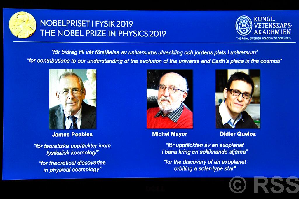 जेनेभा यस वर्षको भौतिकशास्त्रतर्फको नोबेल पुरस्कार दुई जना स्वीस वैज्ञानिक र एकजना क्यानाडाली–अमेरिकी वैज्ञानिकलाई संयुक्त रुपमा प्रदान गर्ने घोषणा गरिएको छ । उहाँहरुलाई खगोलशास्त्रको अध्ययनमा महत्वपूर्ण योगदान पु¥याएको भन्दै पुरस्कृत गरिएको नोबेल पुरस्कार छनौट समितिले जनाएको छ ।