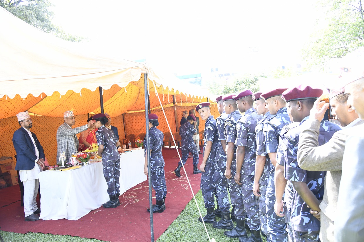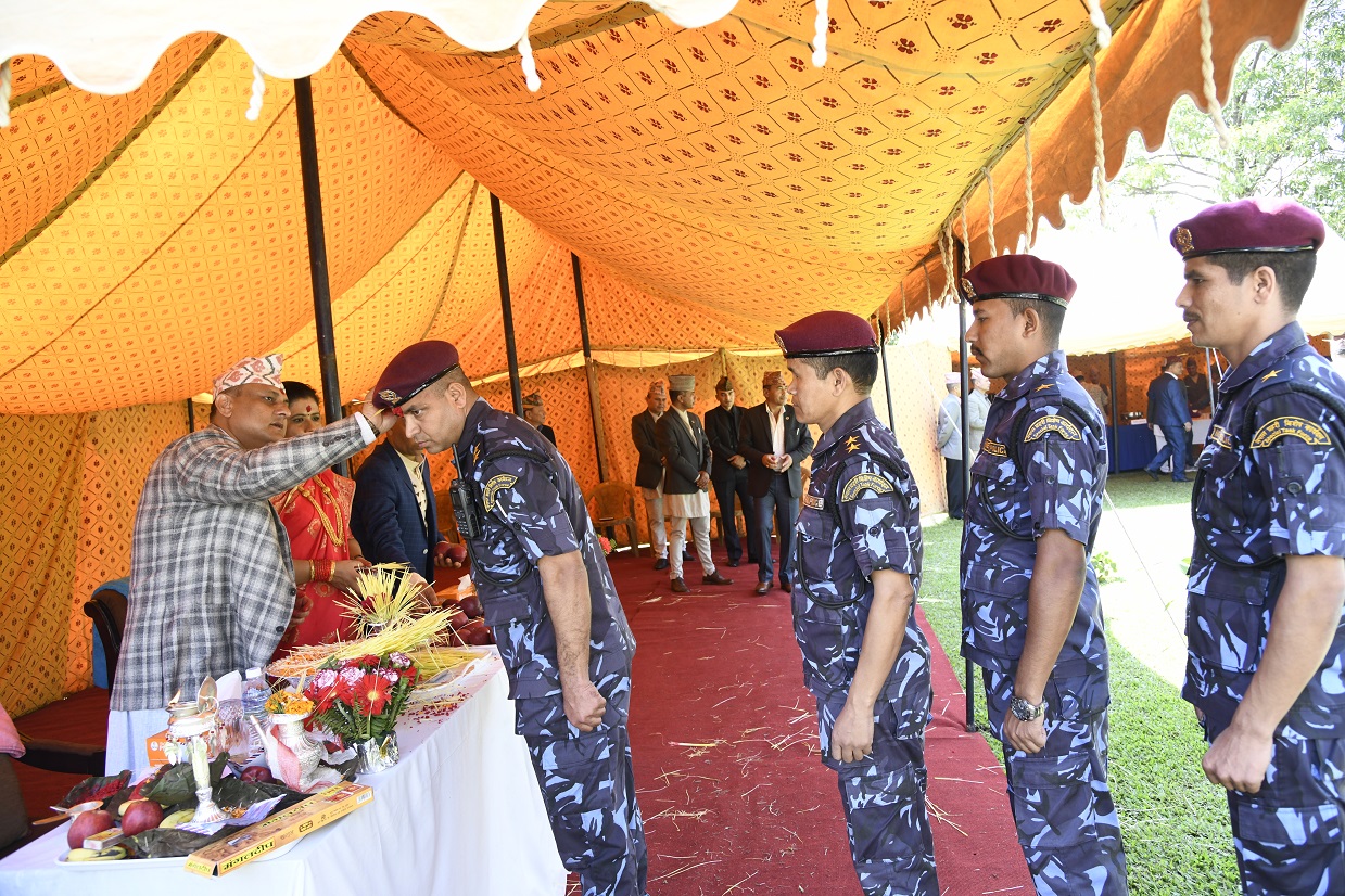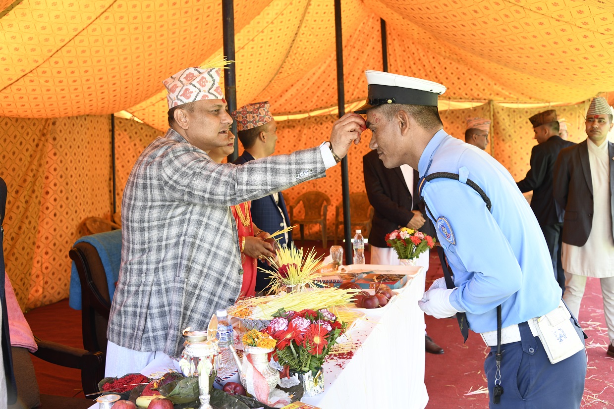 सो अवसरमा नेपाल प्रहरी श्रीमती संघकी अध्यक्ष श्रीमती प्रमीला खनालले उक्त संघका पदाधिकारी एवम् सदस्यहरुलाई टीका लगाउनुको साथै टीका ग्रहणका लागि उपस्थितलाई जमरा र प्रसाद प्रदान गरिन् ।