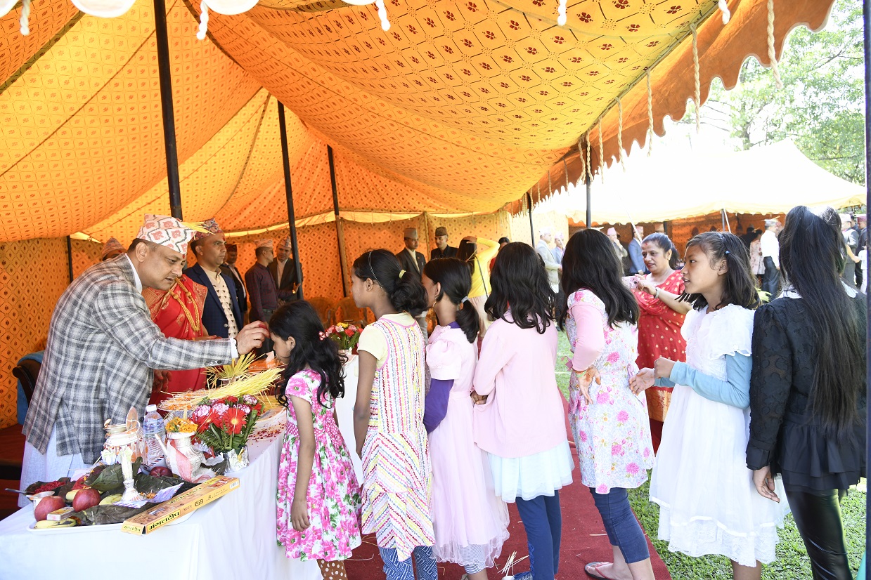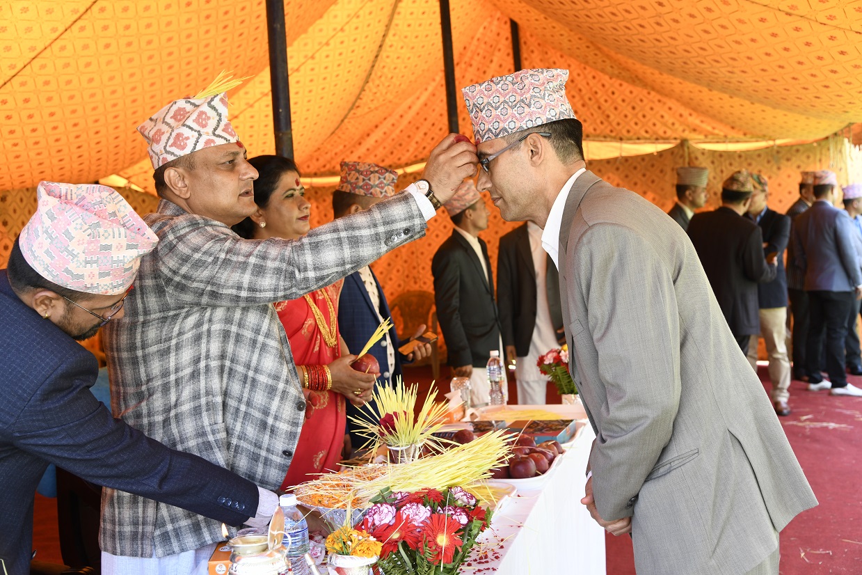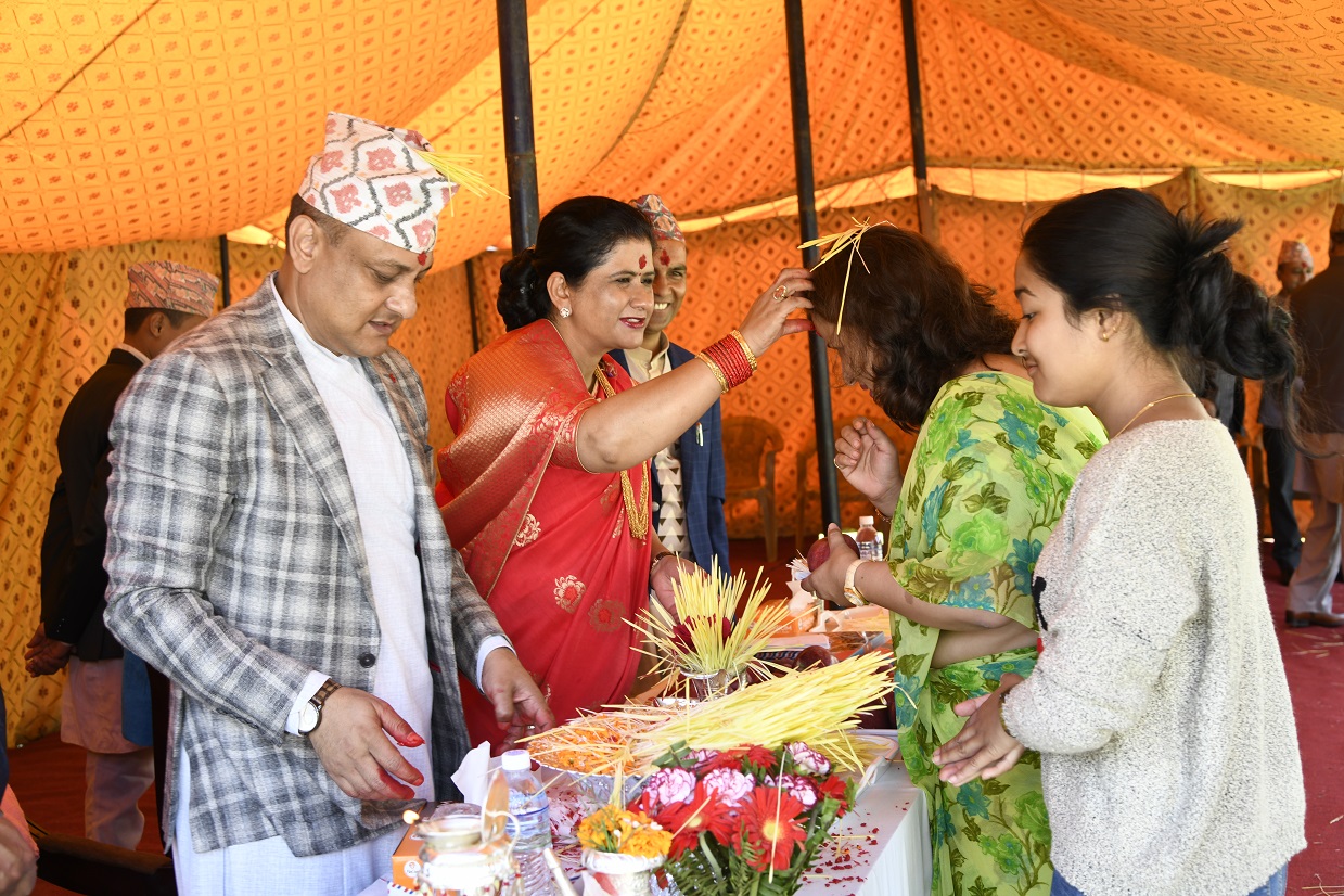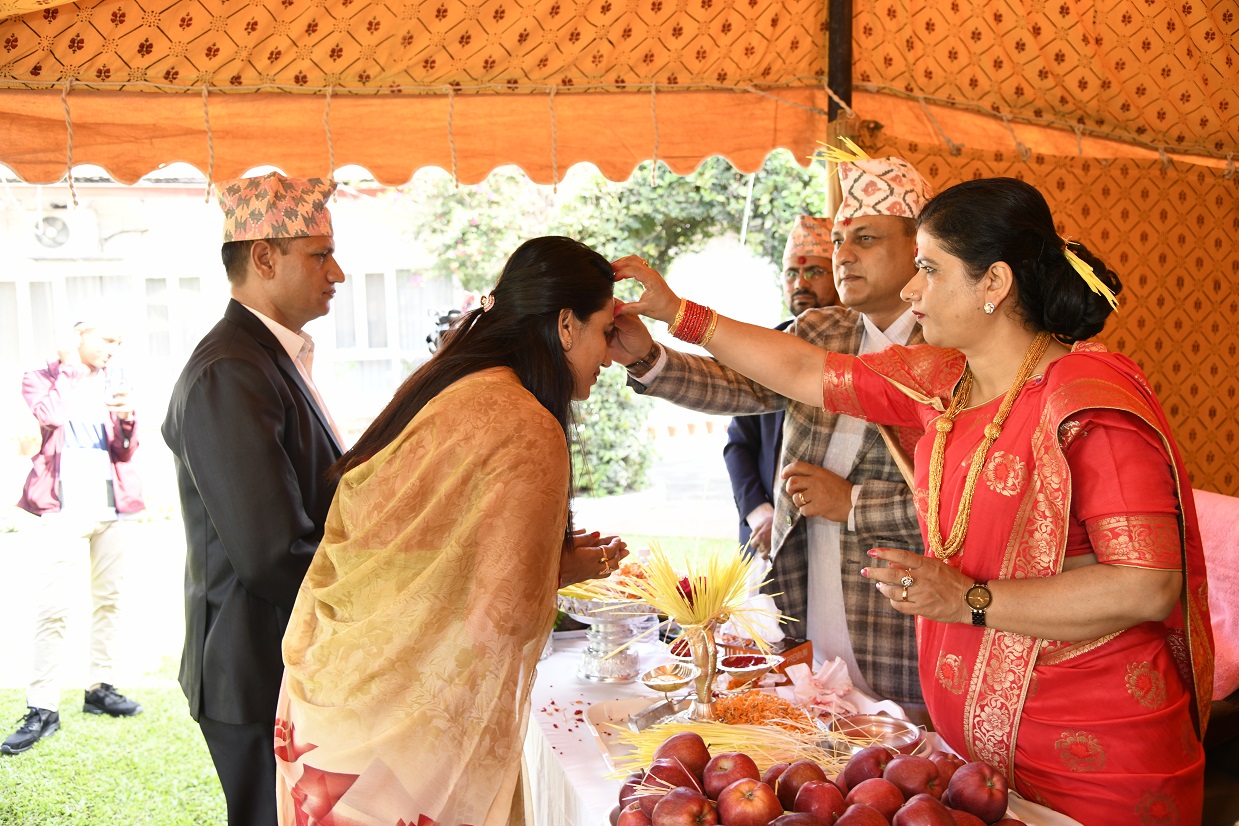 सो अवसरमा नेपाल प्रहरी श्रीमती संघकी अध्यक्ष श्रीमती प्रमीला खनालले उक्त संघका पदाधिकारी एवम् सदस्यहरुलाई टीका लगाउनुको साथै टीका ग्रहणका लागि उपस्थितलाई जमरा र प्रसाद प्रदान गरिन् ।