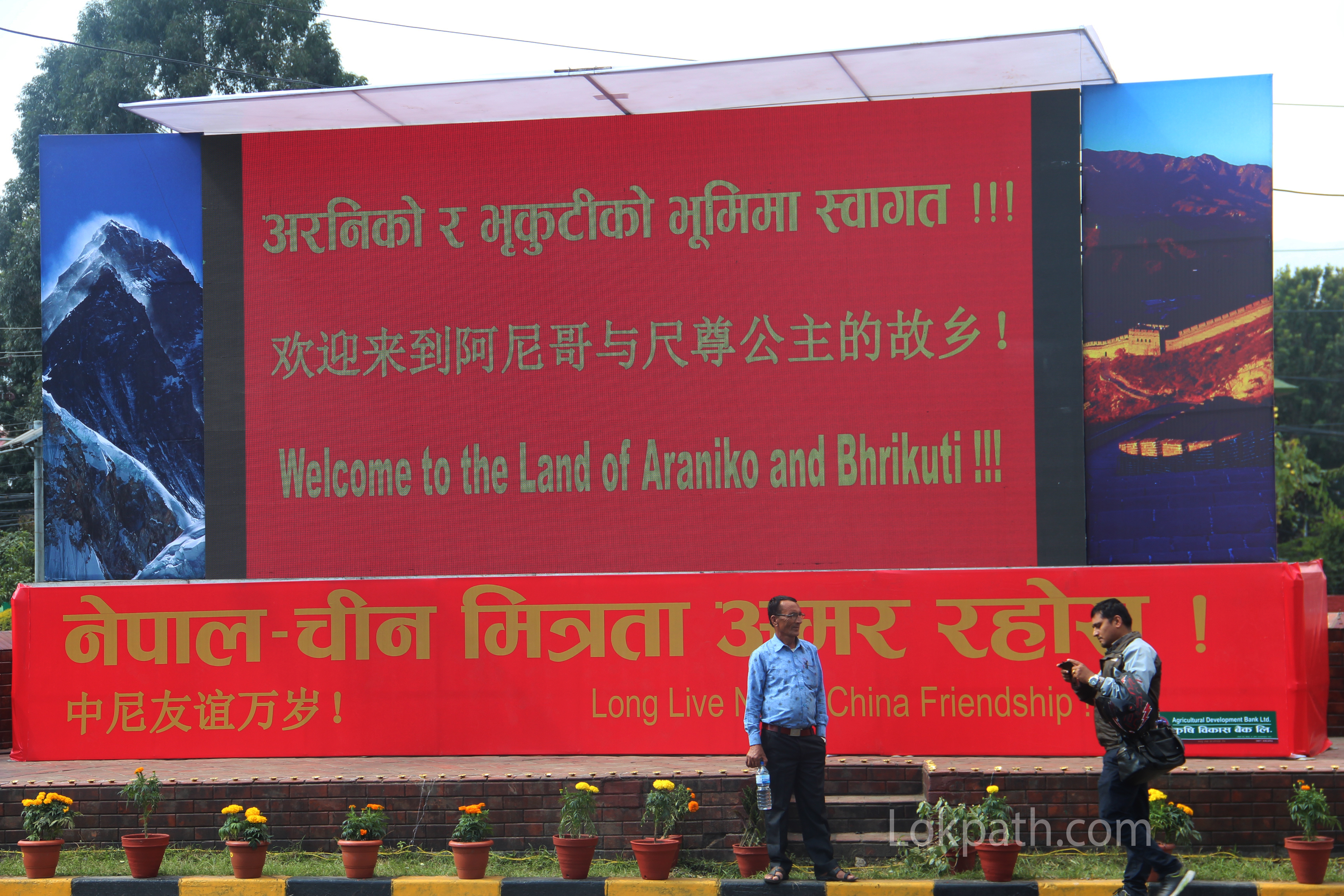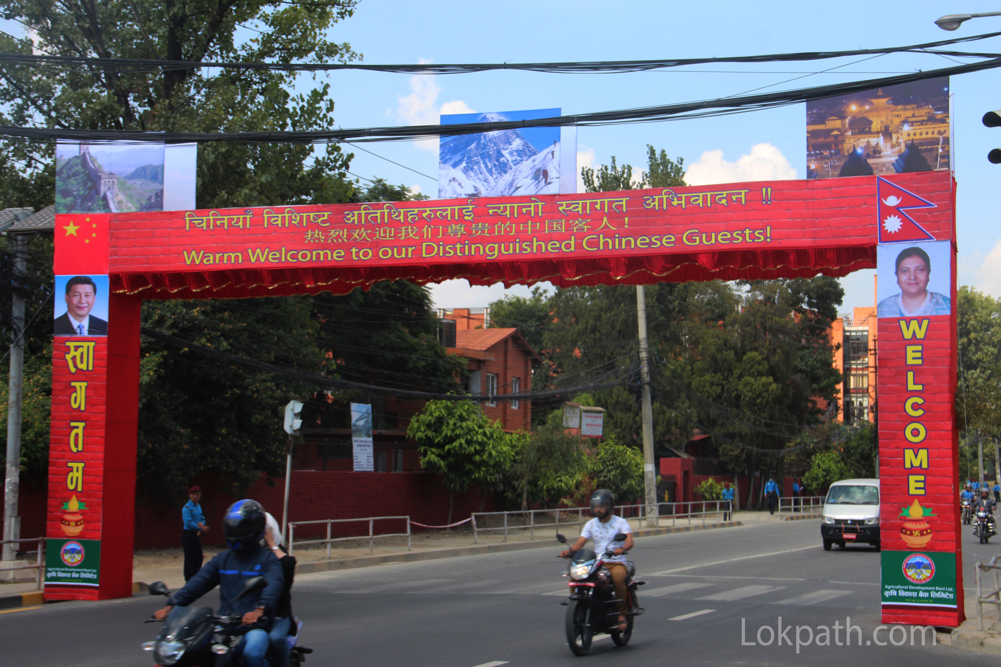 तर छिमेकी मुलुक चीन र भारतबाट आउने पहुनाको निम्ति नेपालले अलि बढी नै मिहिनेत गर्ने गरेको छ । यसैबिच चिनियाँ राष्ट्रपति सी जिनपिङको दुई दिने राजकिय भ्रमणको पुर्वसन्ध्यामा नेपालका राष्ट्रपति विध्यादेवी भण्डारी र चीनियाँ राष्ट्रपति सीको तस्वीरहरु काठमाडौंमा विजुलीका पोलमा टासिँएको छ । सडक सफा बनाइएको छ । करिब ८ दिनमा यो सबै तयार पारिएको हो ।
