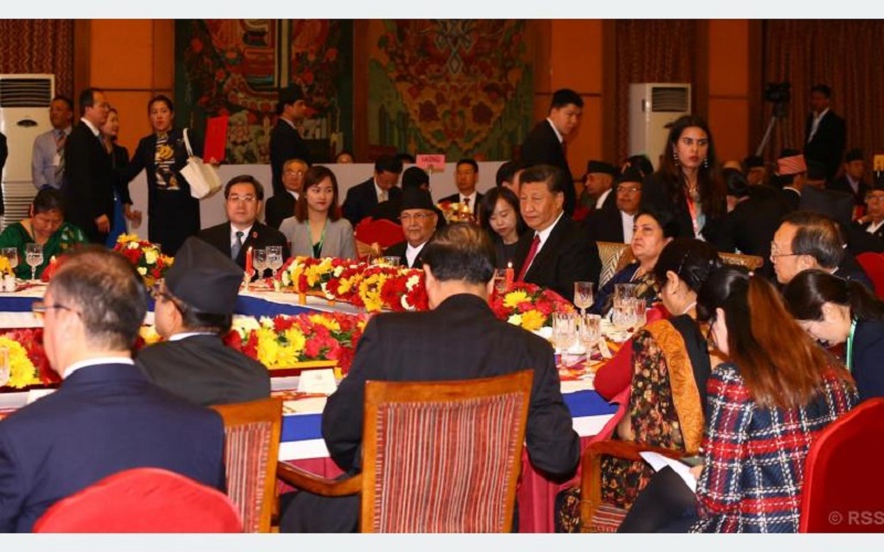 नेपाल भ्रमणमा आउनुभएका चिनियाँ राष्ट्रपति सी जिनपिङको सम्मानमा राष्ट्रपति विद्यादेवी भण्डारीले रात्रिभोजको आयोजना गर्नुभएको थियो । राजकीय भोजमा सुरसुधा ब्याण्डद्वारा साङ्गीतिक प्रस्तुति पनि थियो । त्यस्तै सोल्टी होटलमा आयोजित रात्रीभोजमा हिमालय सीमापार रेलमार्गको सम्भाव्यता अध्ययन गर्ने घोषणा पनि राष्ट्रपति सी गर्नुभएको थियो ।