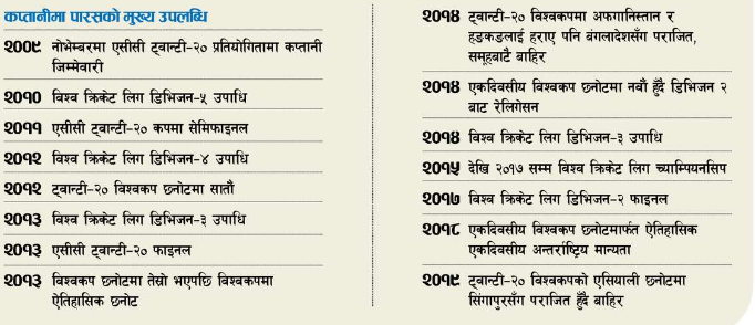 १० वर्षको बीचमा नेपाली क्रिकेटले देखेको सबैखाले सपना साकार पार्न समूहको नेतृत्व पारसले गरेकोखबर आजको कान्तिपुर दैनिकमा छापिएको छ ।