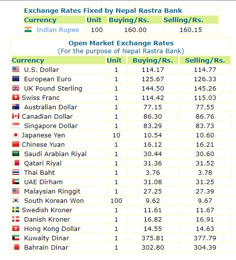 यस्ताे छ आजकाे विनिमयदर