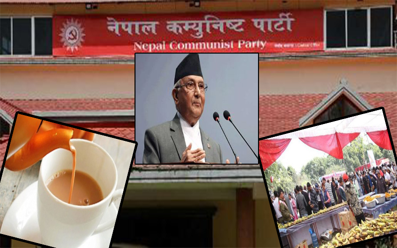 काठमाडौंको भृकुटीमण्डपमा सत्ताधारी नेपाल कम्युनिष्ट पार्टी ९नेकपा०ले आयोजना गरेको चियापान चलिरहेको छ ।