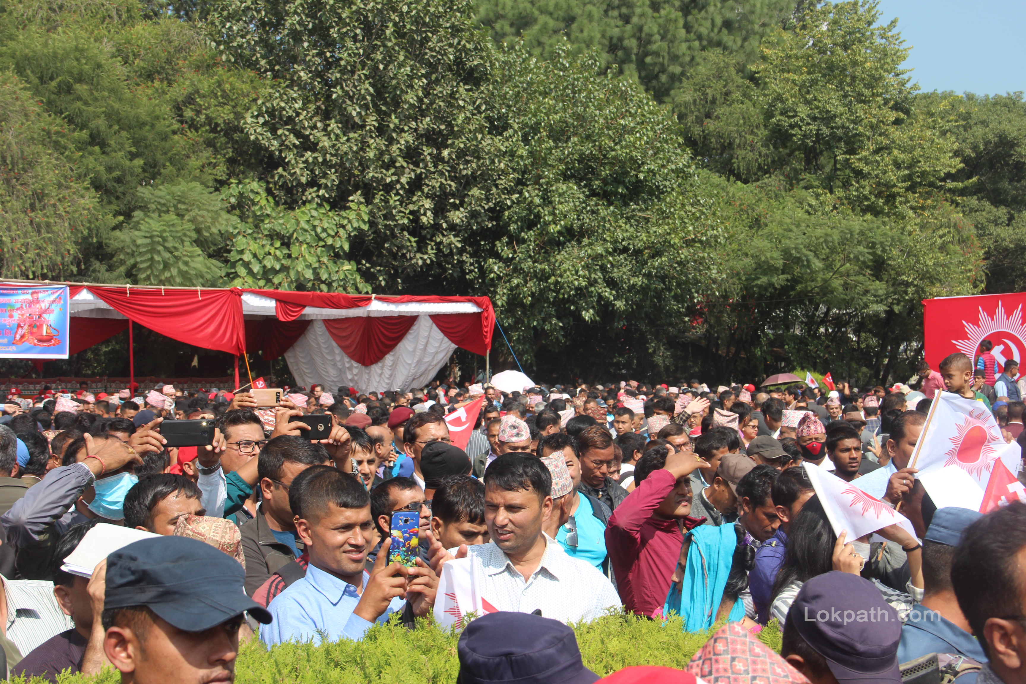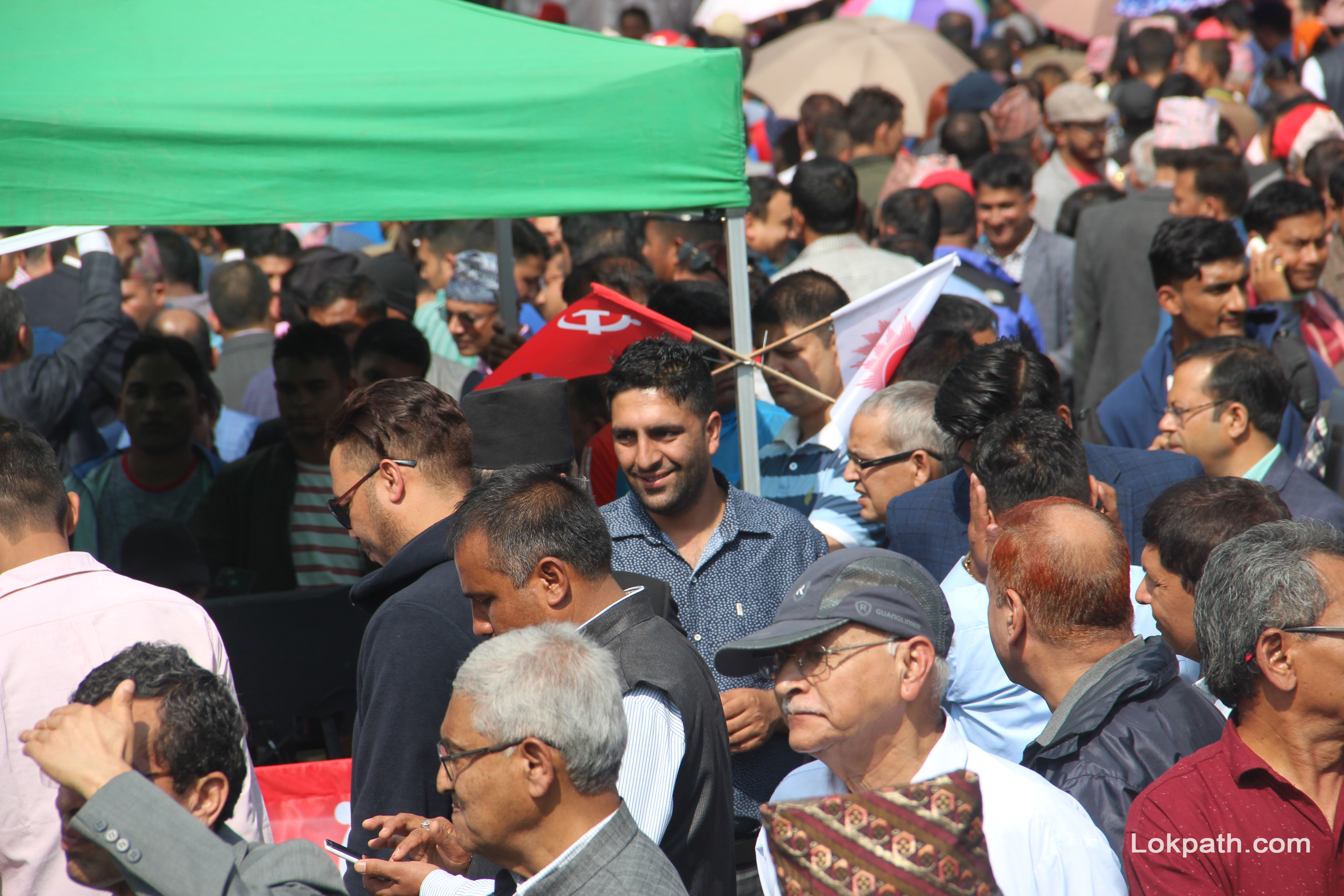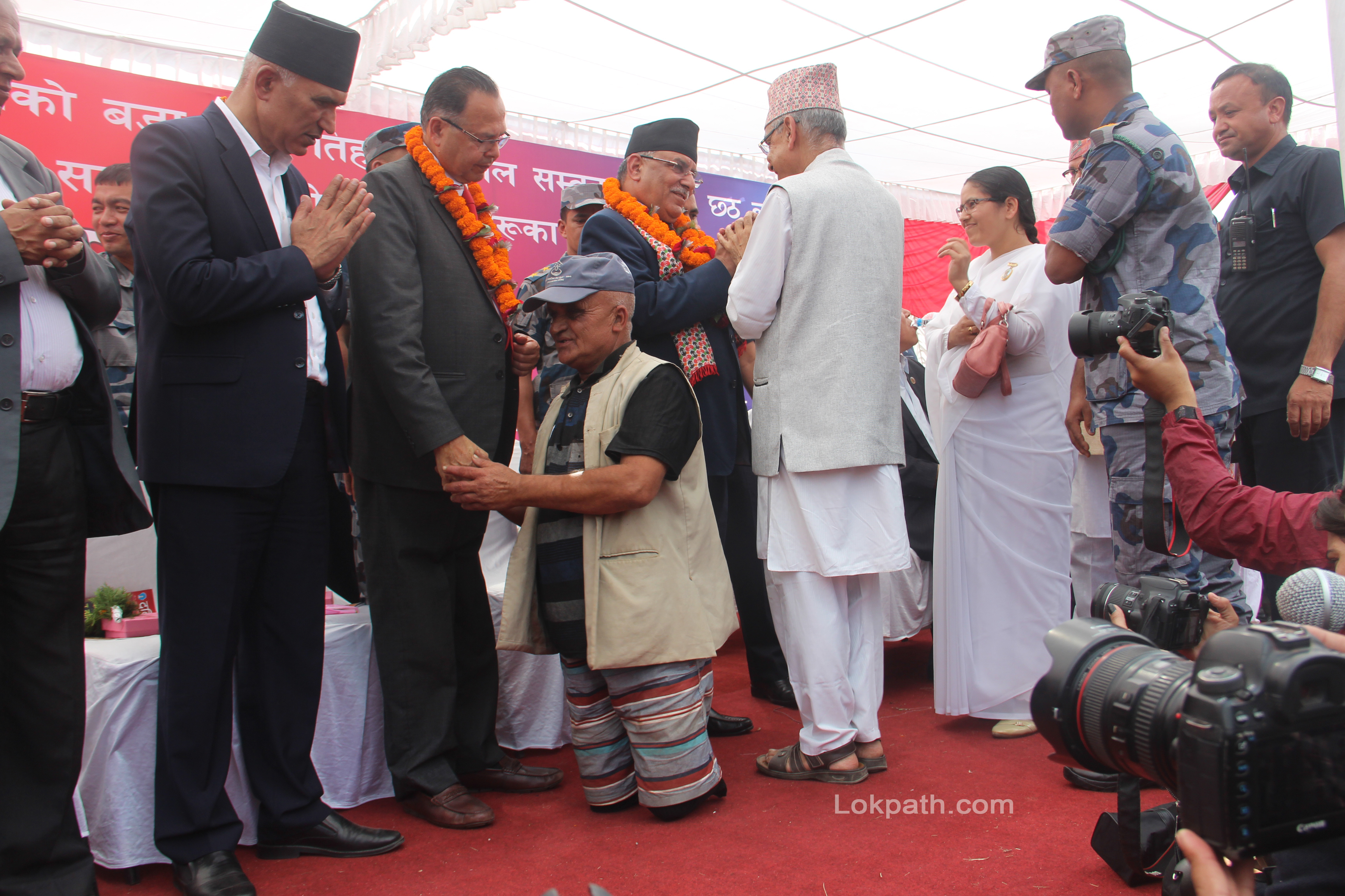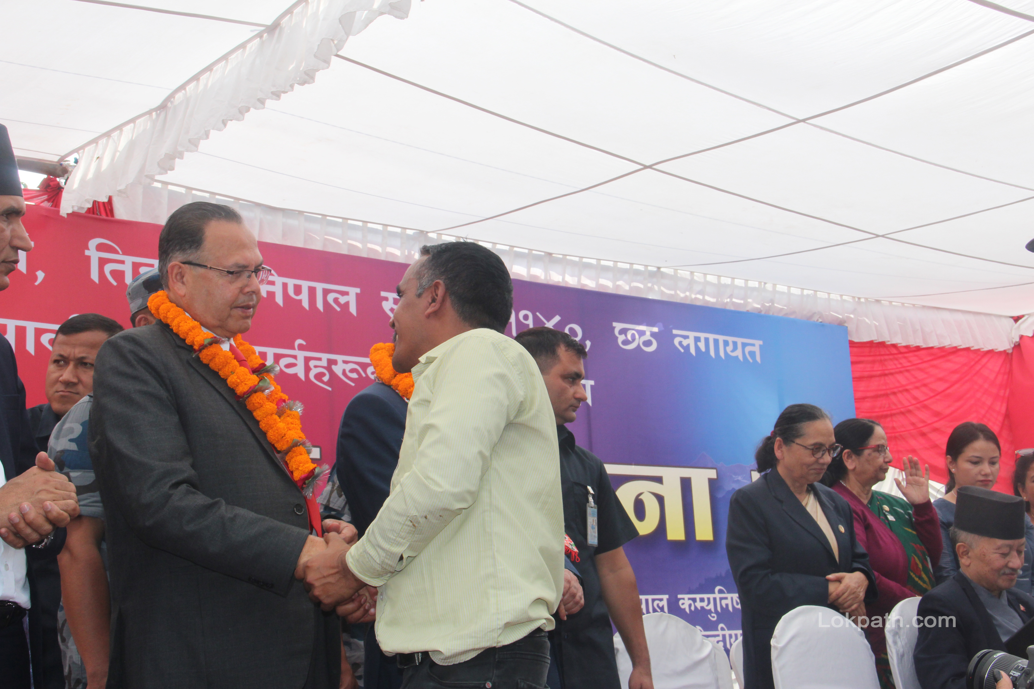 कार्यक्रममा नेकपाका अध्यक्षद्वय केपी शर्मा ओली, पुष्पकमल दाहाल प्रचण्ड, प्रमुख नेताहरु माधव कुमार नेपाल, विष्णु पोखरेल, नारायकाजी श्रेष्ठलगायतका नेताहरु उपस्थित हुनुभएको छ ।