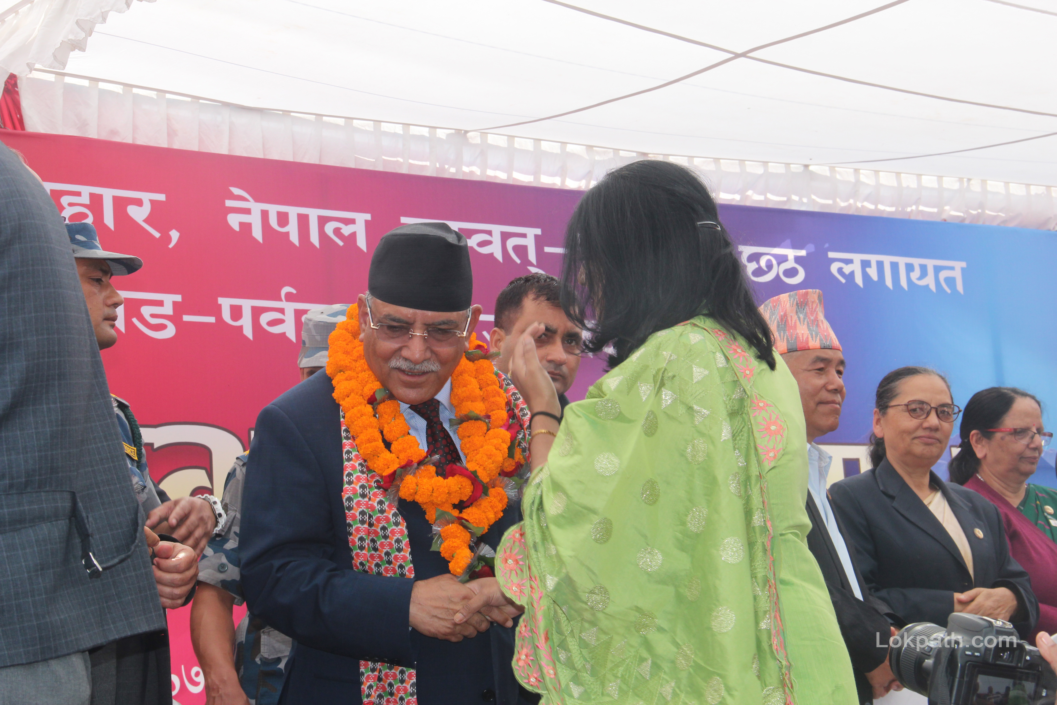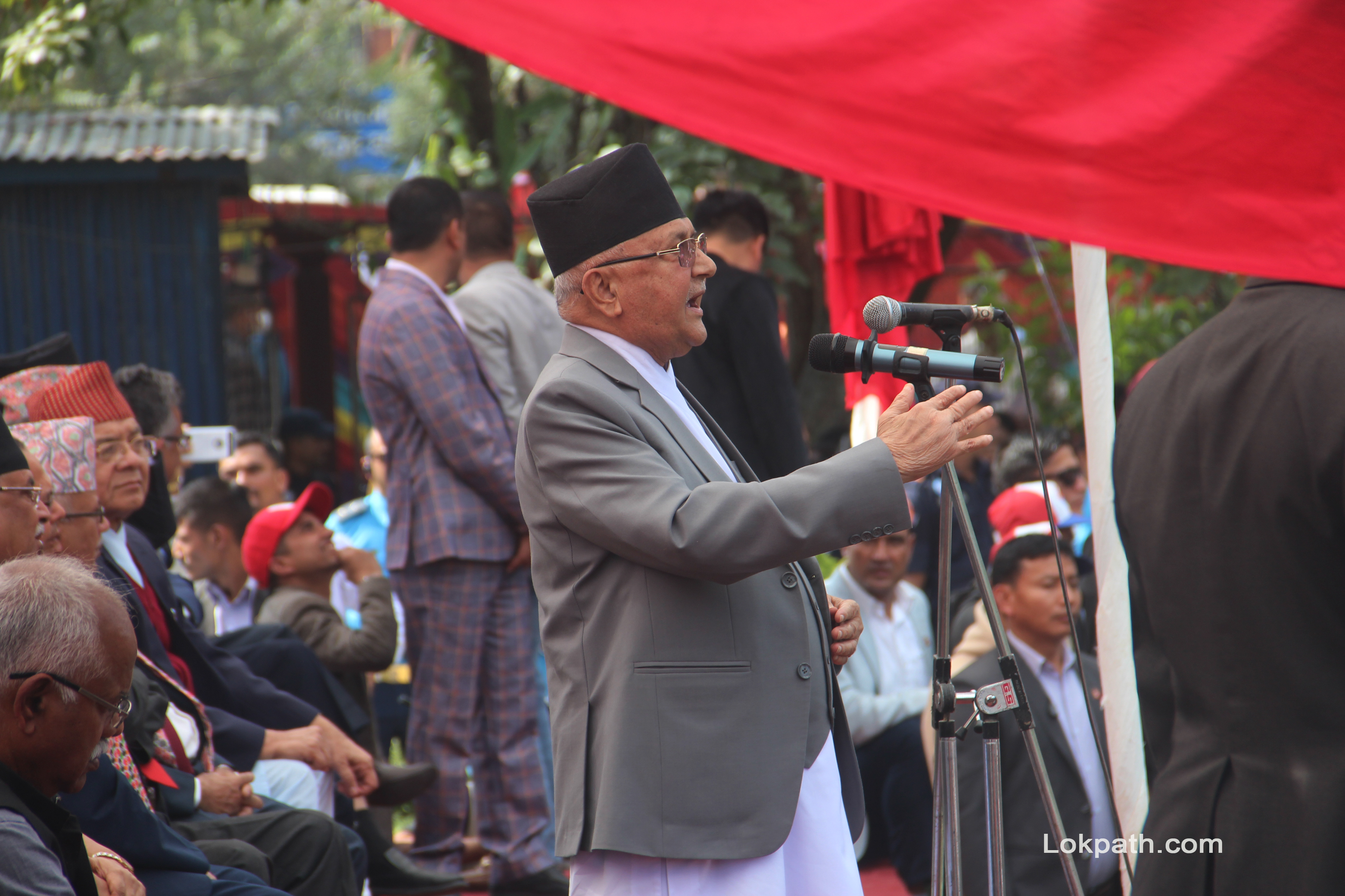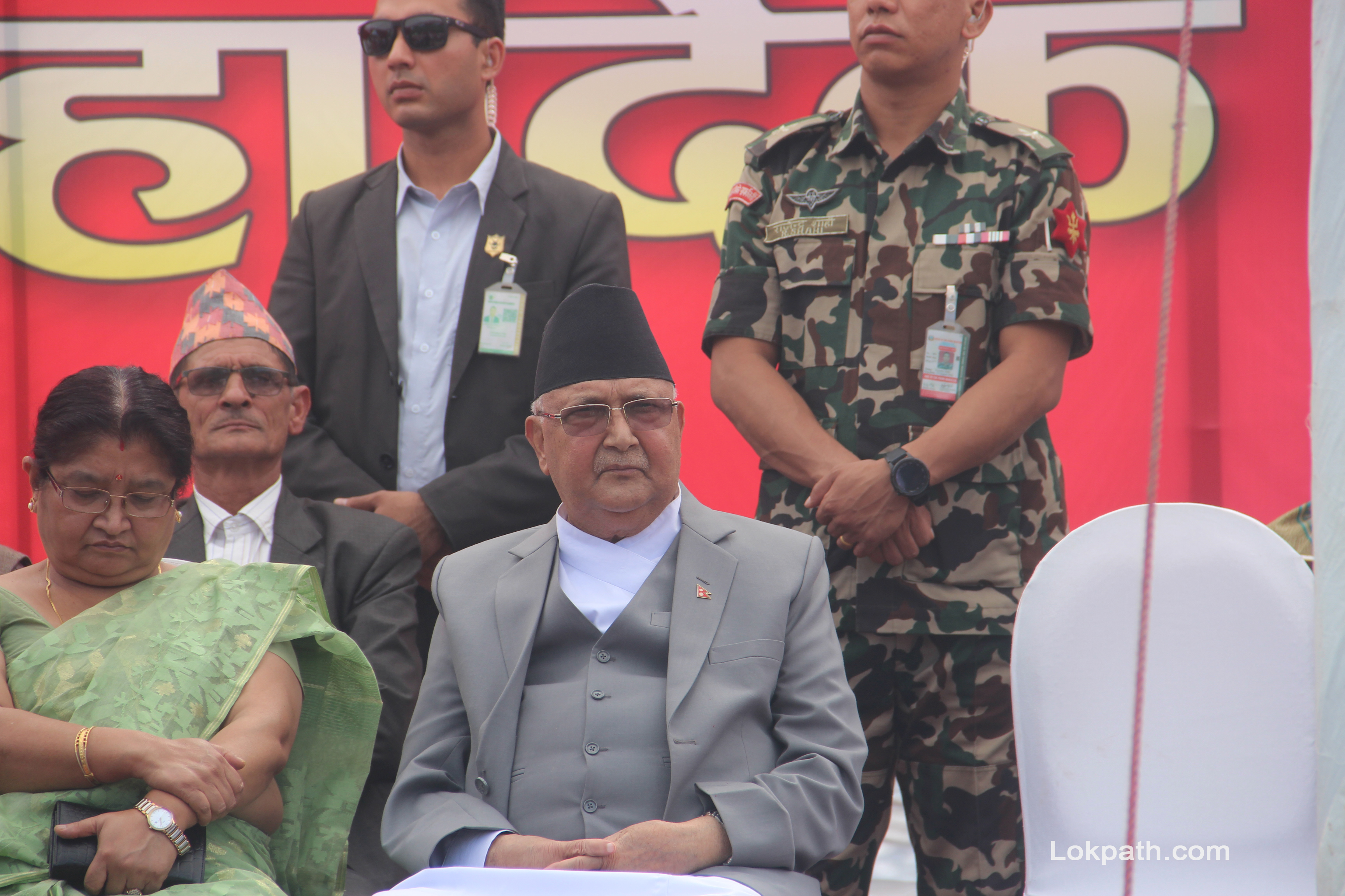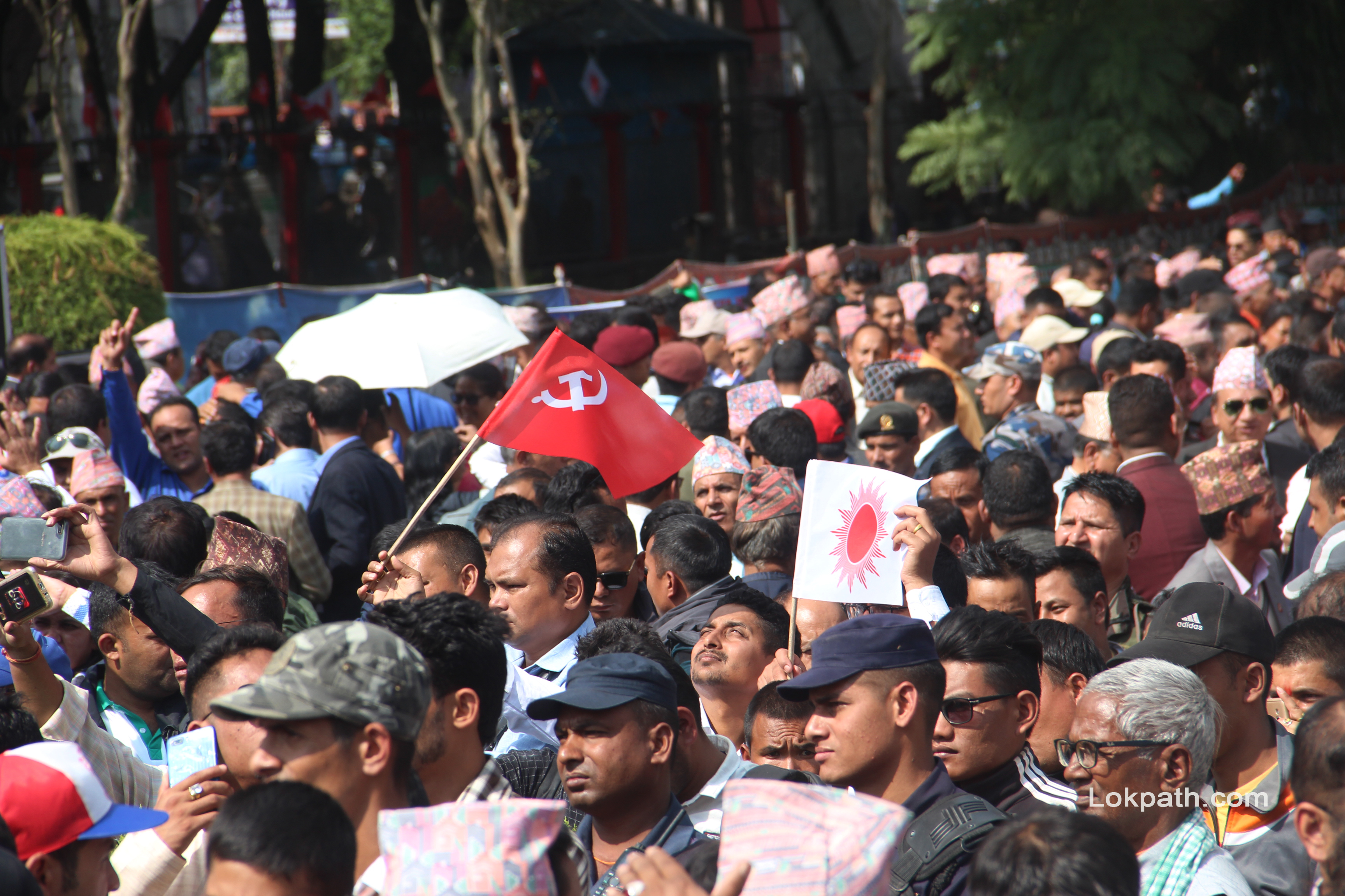 कार्यक्रममा नेकपाका अध्यक्षद्वय केपी शर्मा ओली, पुष्पकमल दाहाल प्रचण्ड, प्रमुख नेताहरु माधव कुमार नेपाल, विष्णु पोखरेल, नारायकाजी श्रेष्ठलगायतका नेताहरु उपस्थित हुनुभएको छ ।