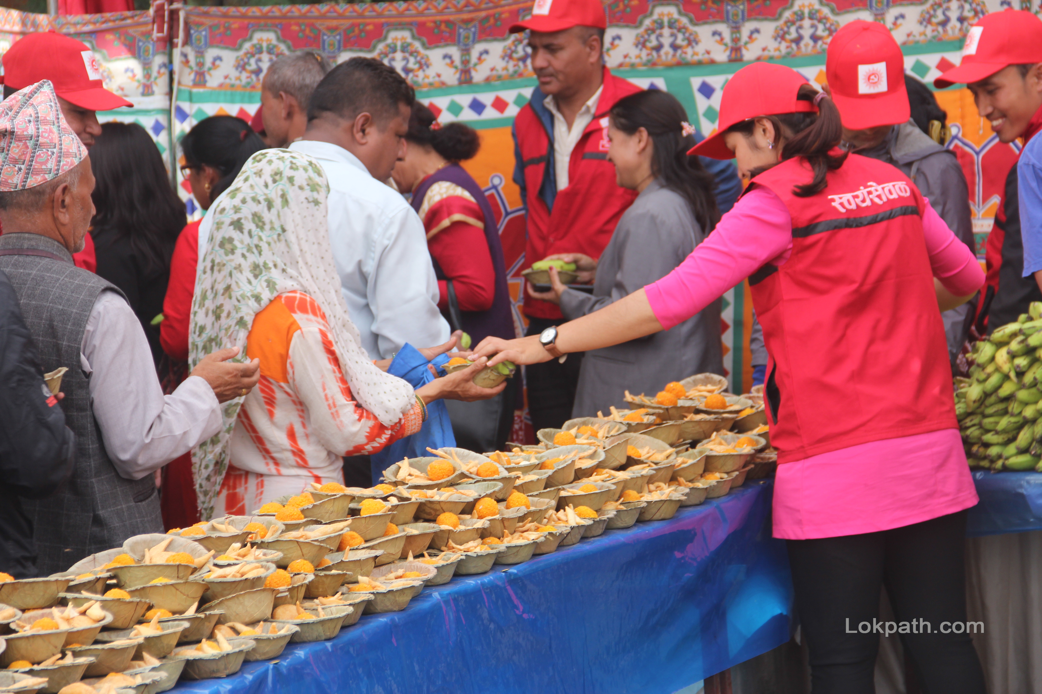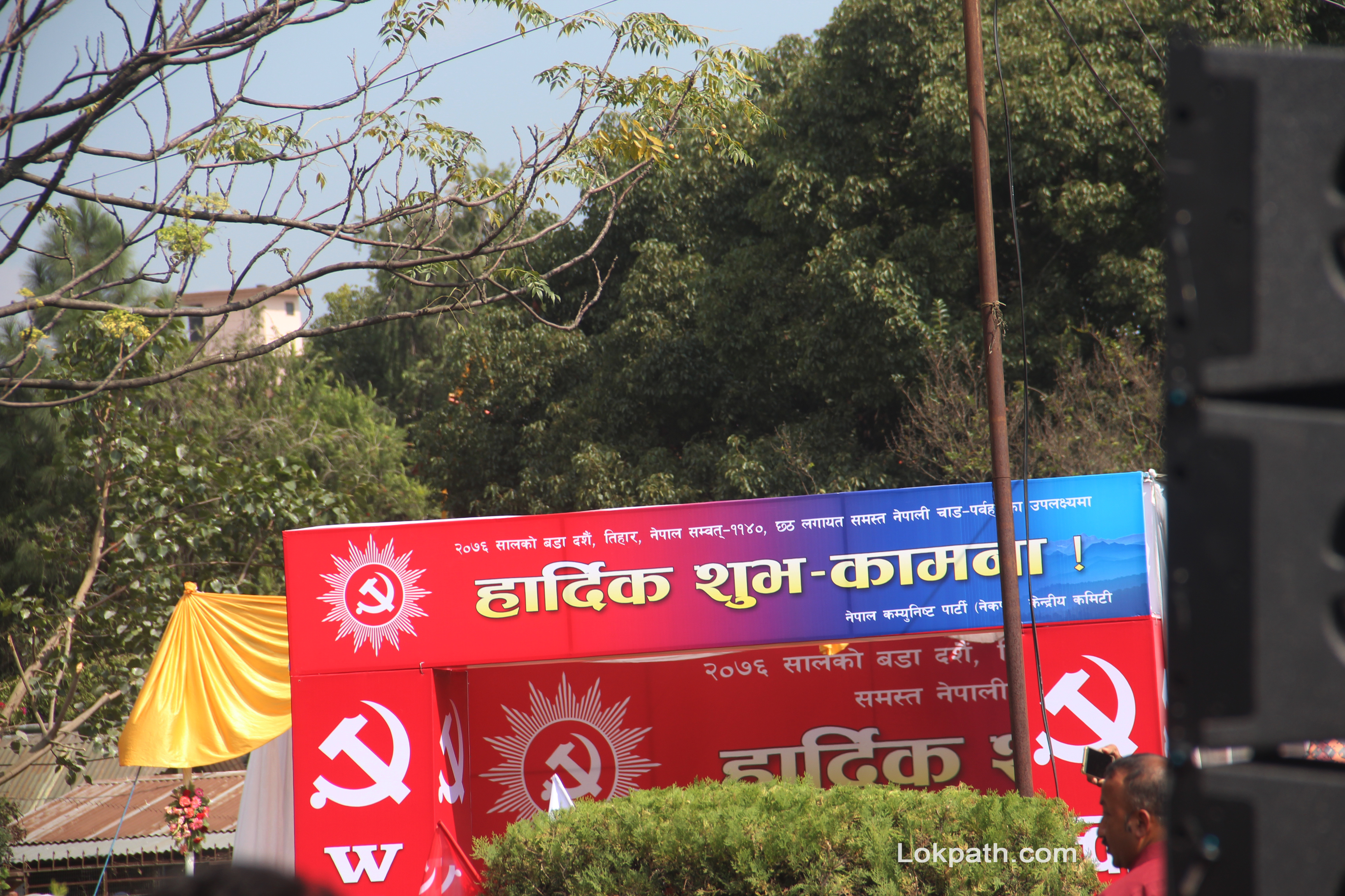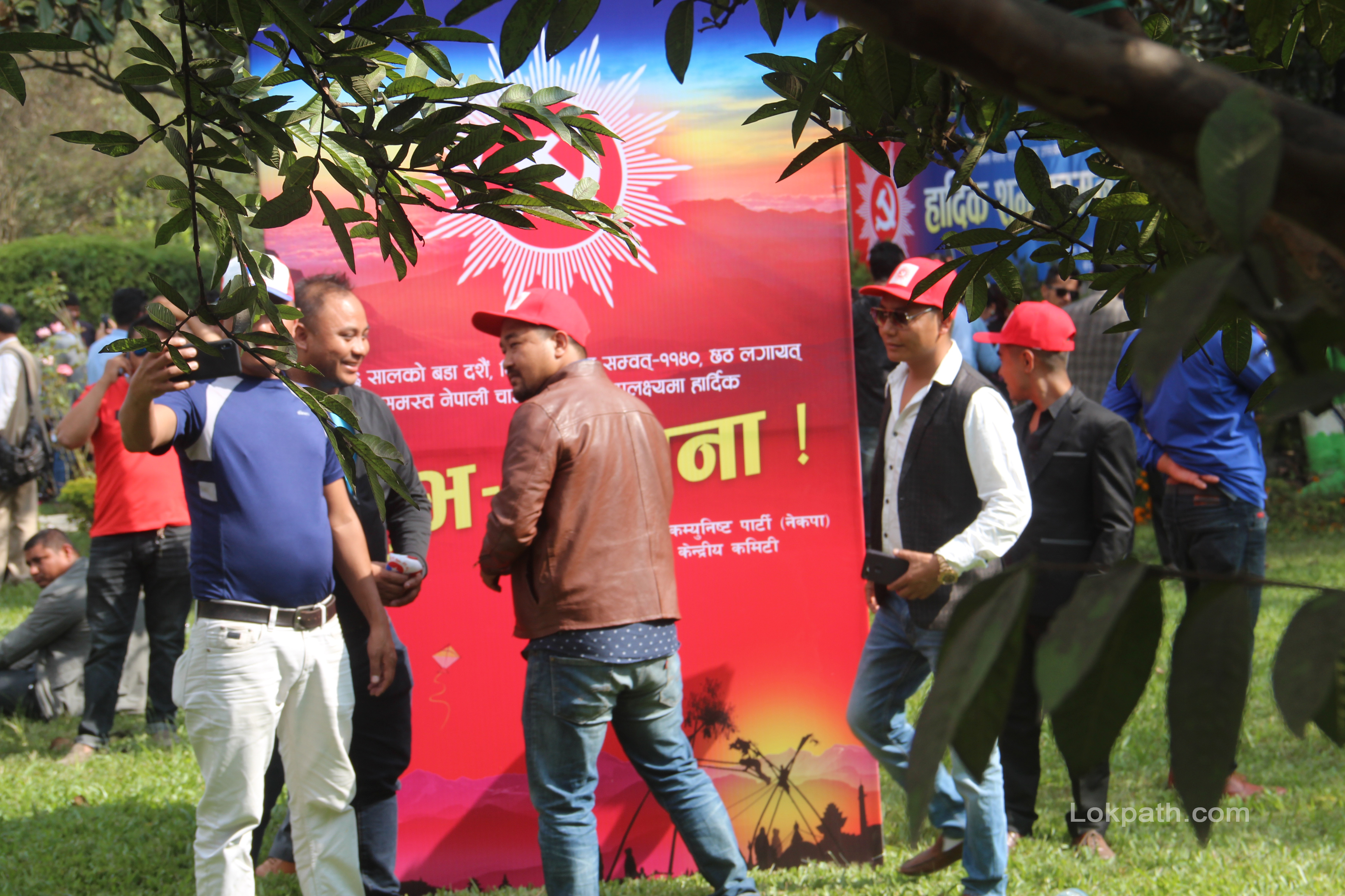 काठमाडौँ । काठमाडौंको भृकुटीमण्डपमा सत्ताधारी नेपाल कम्युनिष्ट पार्टी (नेकपा)ले बुधबार चियापान कार्यक्रम भइरहेको छ । बडादसैं, तिहार, छठ पर्वका अवसरमा नेकपाले चियापानको आयोजना गरेको हो ।