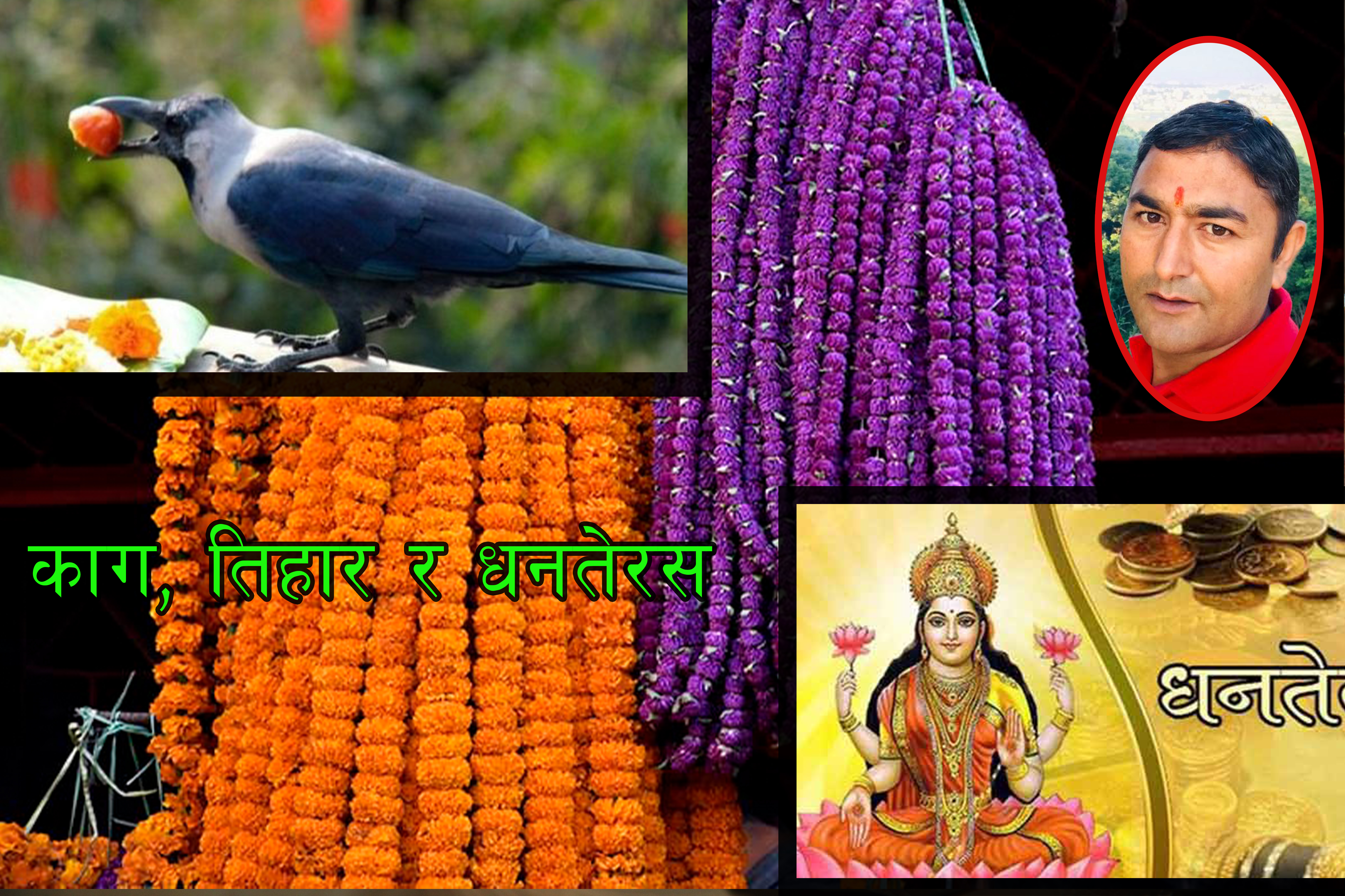 त्यस दिनलाई काग तिहारका अलवा आयुर्वेदका प्रवर्तक धन्वन्तरि र धनका मालिक कुबेरको जन्म दिनका रुपमा पनि मनाउने चलन छ । त्यसैले यस दिनलाई धनवन्तरी त्रयोदशी अर्थात धनतेरस पनि भनिन्छ । आयुर्वेदका प्रवर्तक धन्वन्तरि समुन्द्रमनथनबाट निःसृत चौध रत्नहरु मध्ये अमृत कलश लिई यसै दिन प्रकट भएबाट धन्वन्तरि जयन्ती मनाउन थालिएको हो ।
