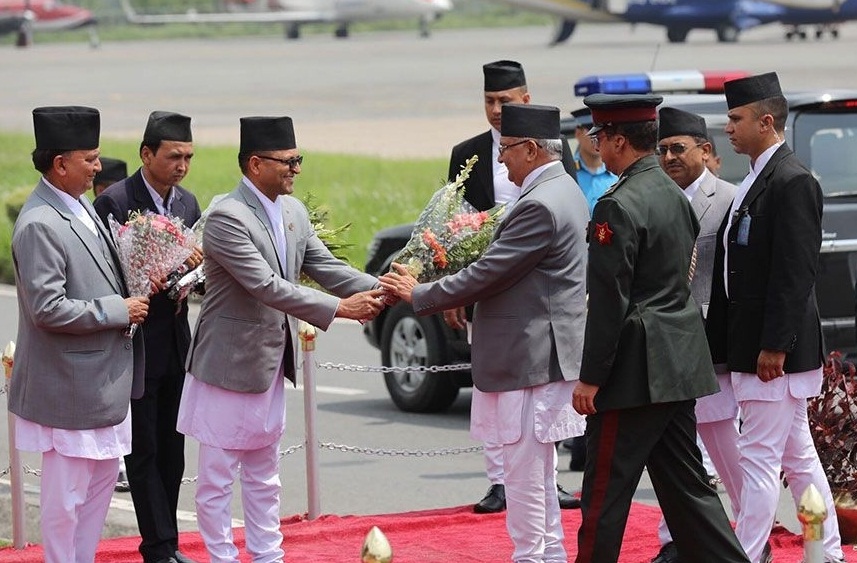 प्रधानमन्त्री ओलीलाई त्रिभुवन अन्तरराष्ट्रिय विमानस्थलको अतिविशिष्ठ कक्षमा राष्ट्रियसभाका अध्यक्ष गणेशप्रसाद तिमल्सिना, उपप्रधानमन्त्री एवं रक्षामन्त्री ईश्वर पोखरेल, सत्तारुढ नेकपाका संसदीय दलका उपनेता सुवास नेम्वाङ, महासचिव विष्णु पौडेललगायतले स्वागत गर्नुभएको थियो । सो अवसरमा नेपाली सेनाको टुकडीले प्रधानमन्त्री ओलीलाई सलामी दिएको थियो ।