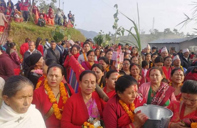 थानीमाई मन्दिरमा फूलको डोली चढाउन भक्तजनको भीड