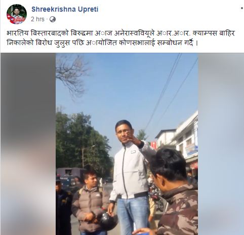 अनेरास्ववियूले गर्यो भारत विरुद्ध विरोध प्रर्दशन