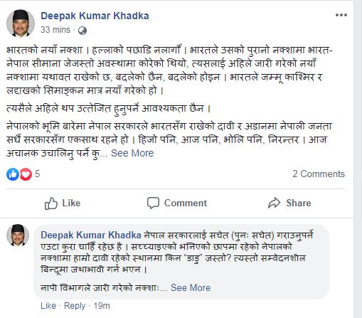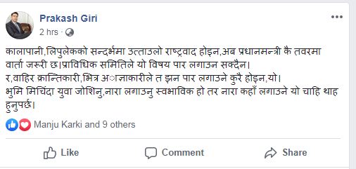 यो स्टाटस उहाँहरुकै फेसबुक वालबाट कपी गरिएको हो ।
