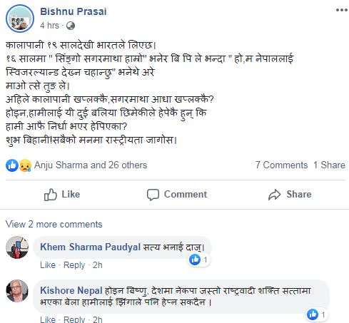 हामीले सामाजिक सञ्जाल प्रयोकर्ताका केहि विचार बटुलेर प्रस्तुत गरेका छौँ ।