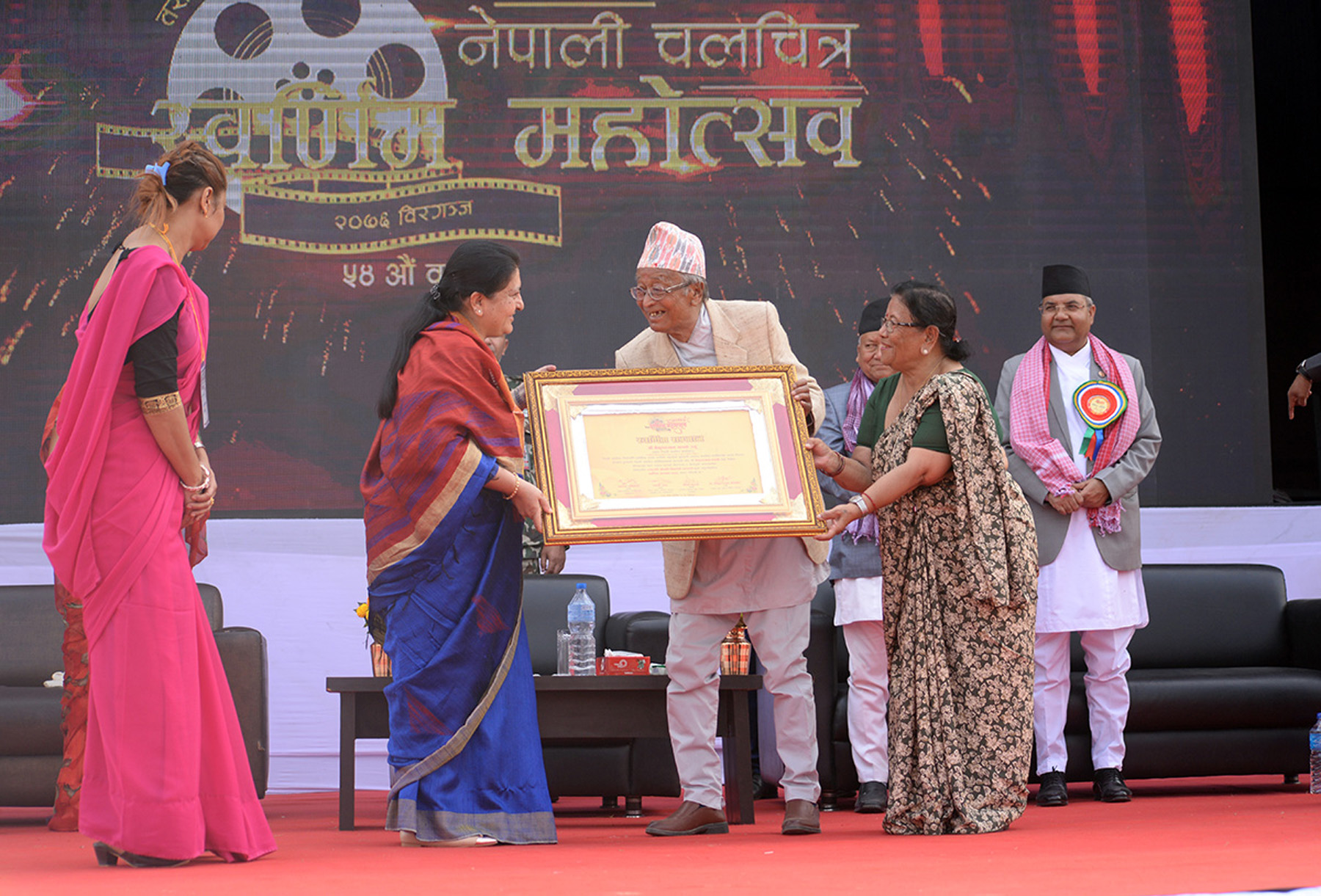सो अवसरमा राष्ट्रपति भण्डारीले नेपाली चलचित्रका प्रथम छायाकार बैकुण्ठ मास्के र सम्पादक तीर्थराज श्रेष्ठलाई स्वर्णीम सम्मान प्रदान गर्नुभयो भने केडिया समूहका तर्फबाट प्रदीप केडियालाई सम्मान हस्तान्तरण गर्नुभयो ।