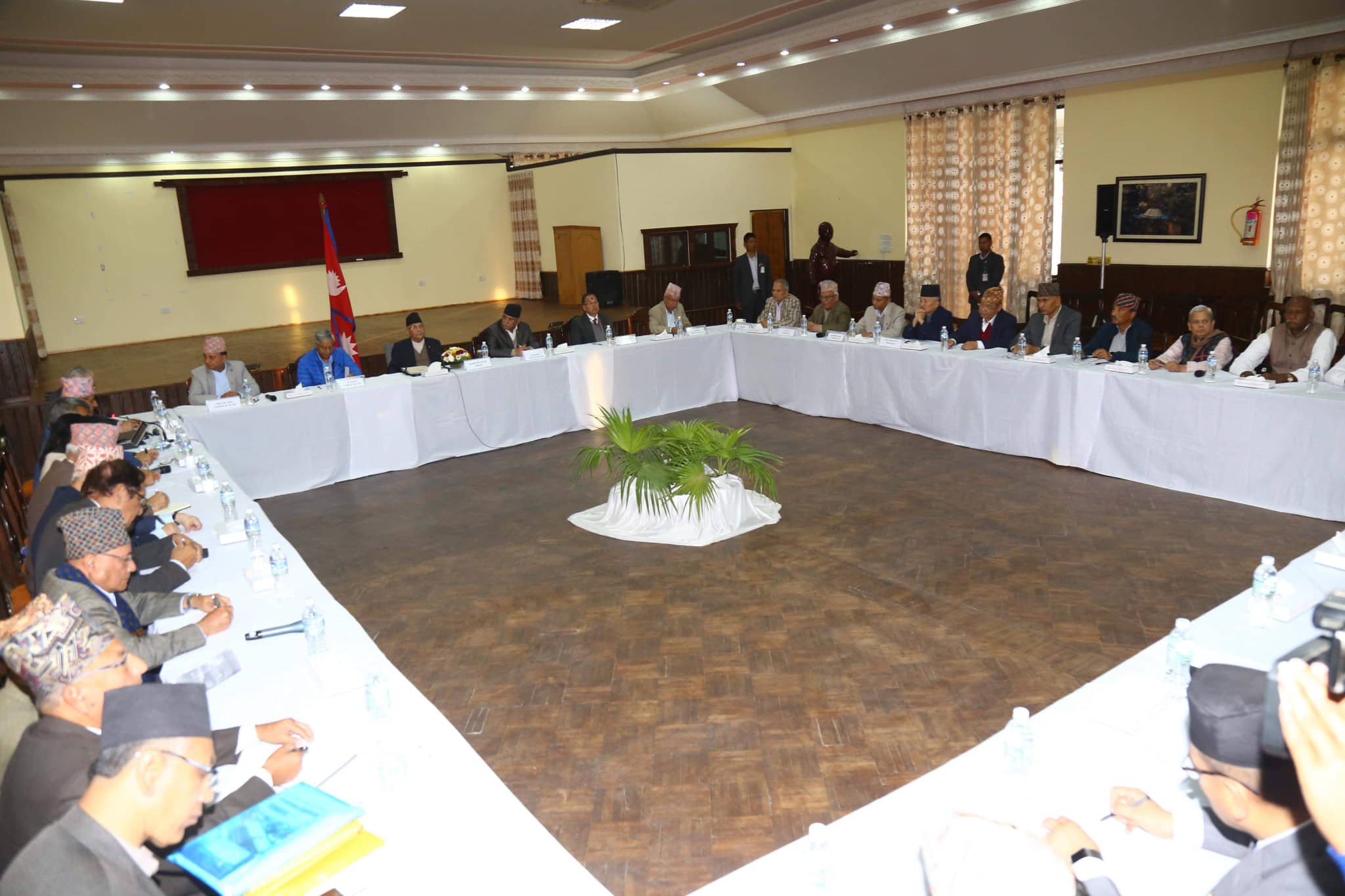 प्रधानमन्त्री निवास बालुवाटारमा जारी सर्वपक्षीय बैठकमा नेपाल कम्युनिस्ट पार्टी (नेकपा)का अध्यक्ष एवं पूर्वप्रधानमन्त्री पुष्पकमल दाहाल ‘प्रचण्ड’, पूर्वप्रधानमन्त्री माधवकुमार नेपाल, उपप्रधान एवं रक्षामन्त्री ईश्वर पोखरेल, नेकपा नेता भीमबहादुर रावलको सहभागिता छ ।