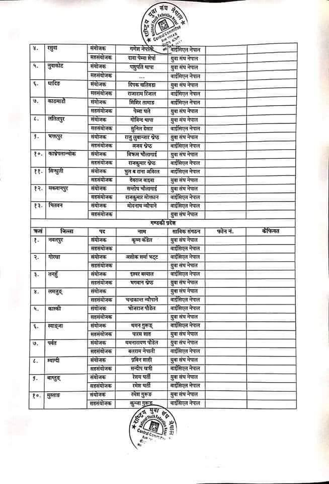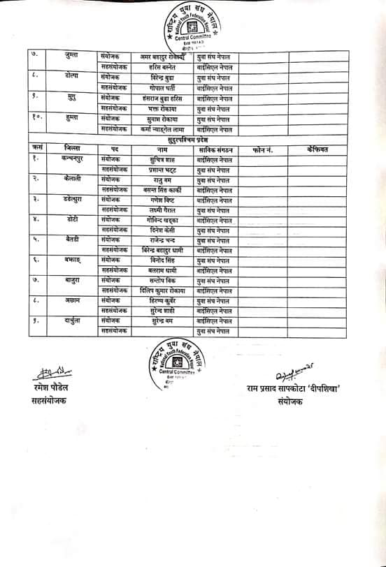युवा सङ्घले लगायो जिल्ला संयोजक र सहसंयोजकको टुंगो (नामावलीसहित)