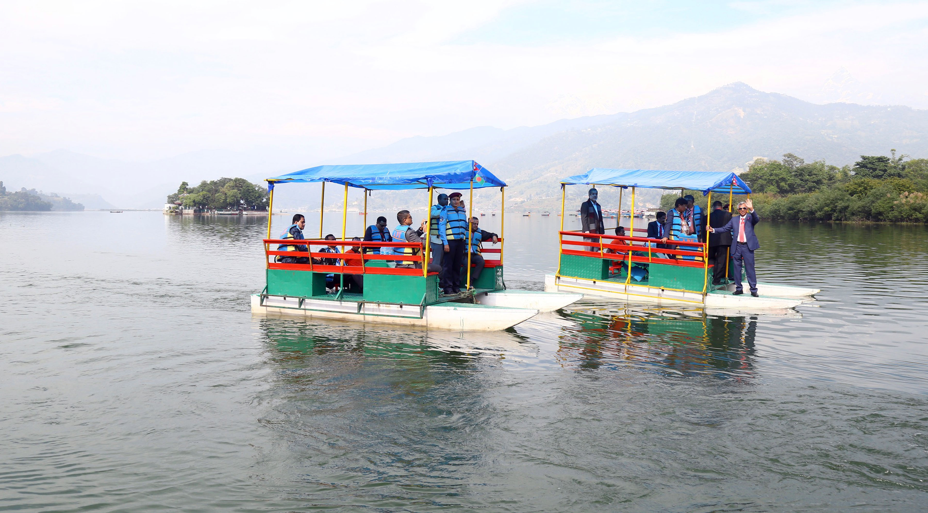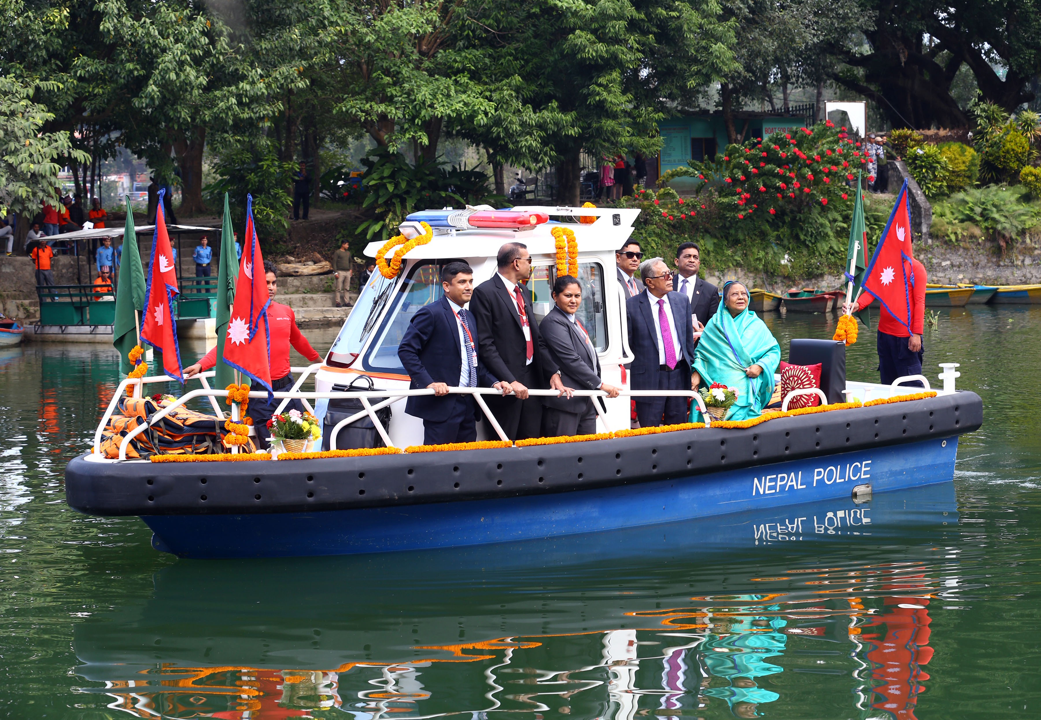 काठमाडौं । नेपालको भ्रमणमा आउनुभएका बंगलादेशका राष्ट्रपति मोहम्मद अब्दुल हमिदले कास्कीको पोखरास्थित फेवातालमा डुंगा शयर गर्नुभएको छ । उहाँ बिहिबार मध्यान्ह करिब १२ बजे पोखरा पुग्नु भएको थियो । राष्ट्रपति हमिद काठमाडौँबाट नेपाली सेनाको हेलिकप्टरबाट पोखरा विमानस्थलमा जानुभएको थियो ।