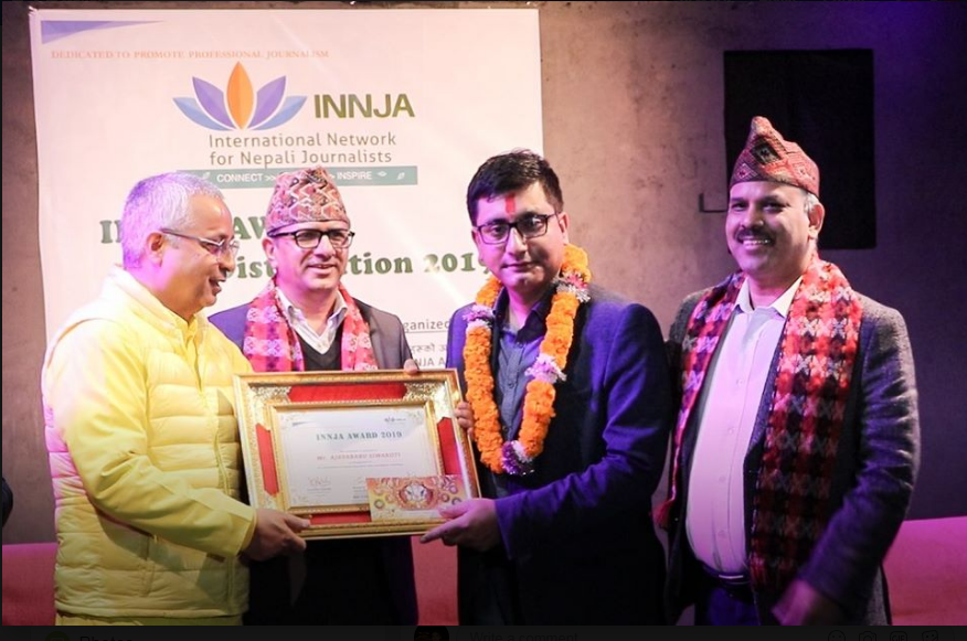 काठमाडौं । पत्रकार अजयबाबु शिवाकोटीलाई ‘ईन्जा साहसी पत्रकारिता पुरस्कार’ प्रदान गरिएको छ ।