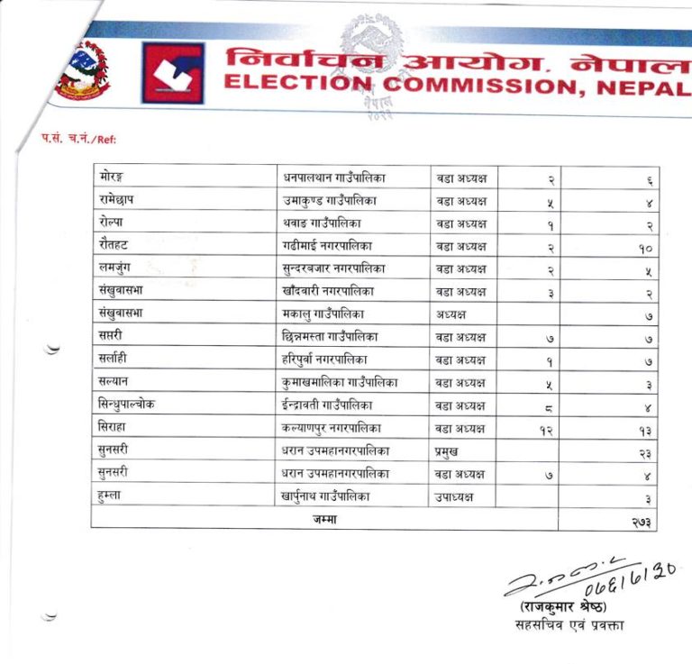 कुल २८२ जनाले उम्मेदवारी मनोनयनपत्र दर्ता गराएका भए पनि ९ जनाले उम्मेदवारी फिर्ता लिएका कारण २७३ जनाको उम्मेदवारी कायम भएको निर्वाचन आयोगले बताएको छ ।