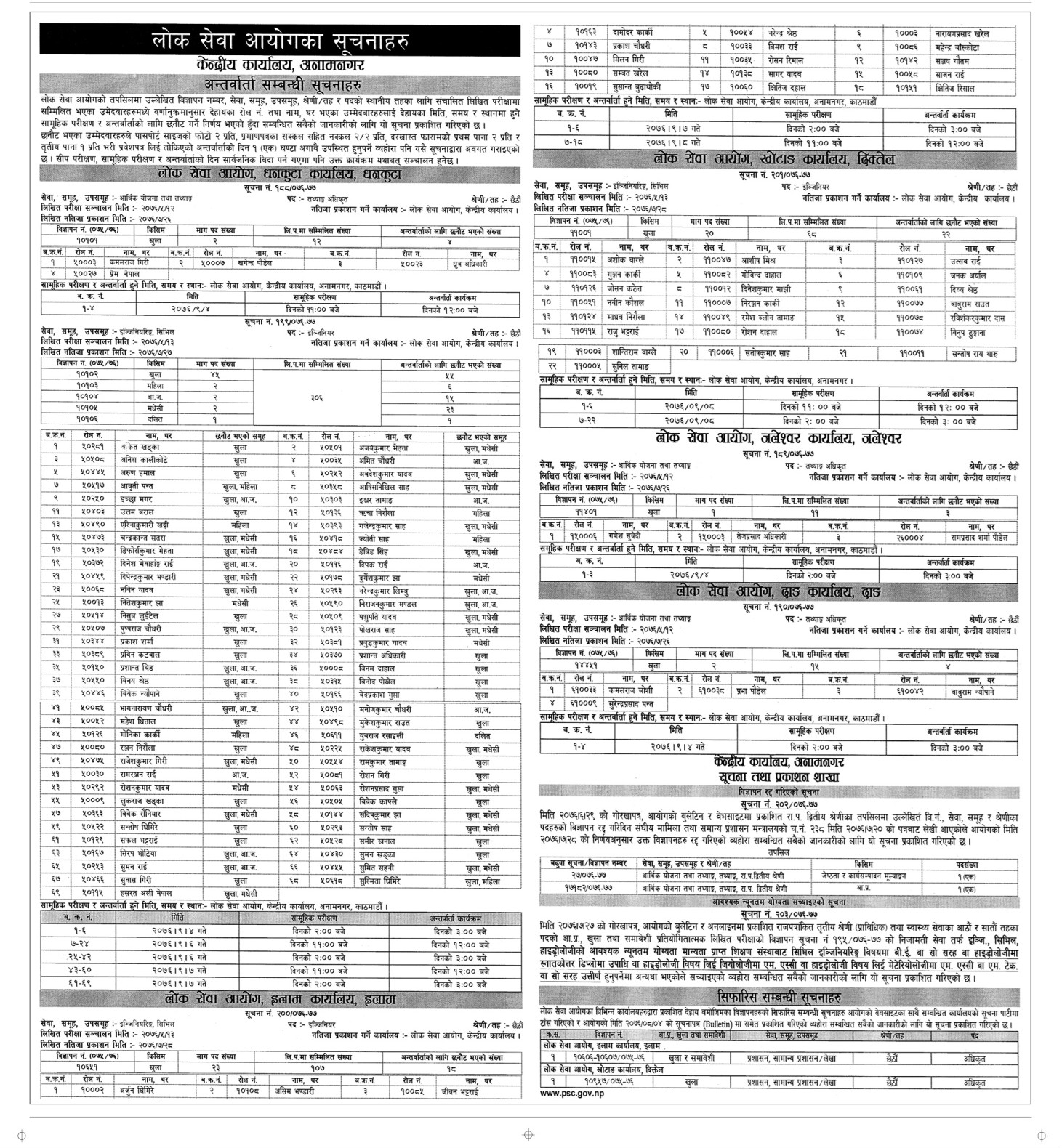 काठमाडौँ । स्थानीय तहका लागि लोकसेवा आयोगले खुलाएको विभिन्न विज्ञापन नम्बर, सेवा, समूह, उपसमूह र पदको नतिजा आइसकेको छ । बुधबार आयोगले लिखित परीक्षामा उत्तीर्ण भएका उम्मेदवारलाई अन्तर्वार्ताका लागि समेत बोलाएको छ ।