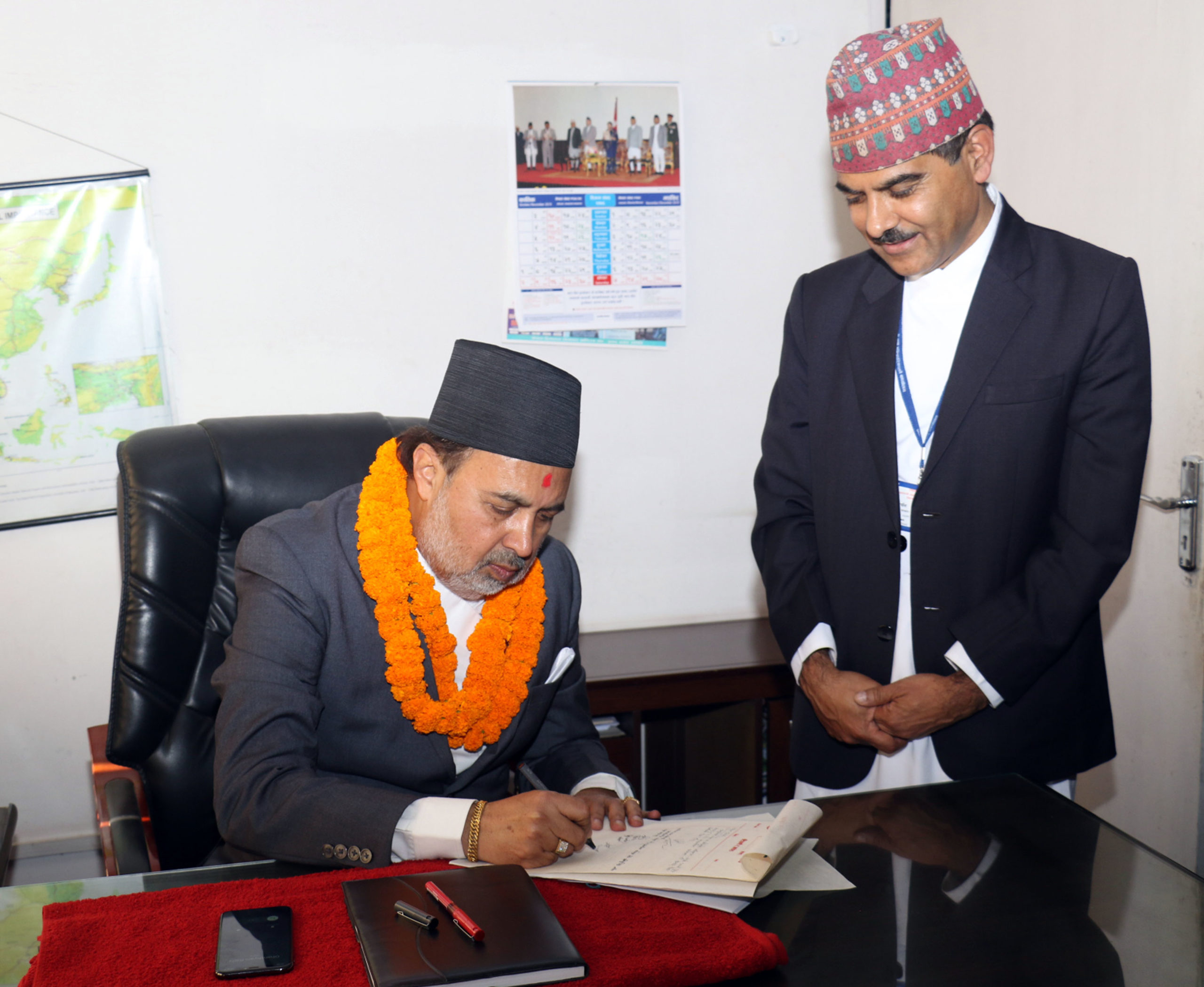 नवनियुक्त राज्यमन्त्री दुगडदवारा कार्यभार सम्हाल्दै