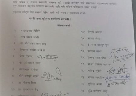 ज्ञापनपत्रमा आह्वानकर्ताका तर्फबाट वरिष्ठ पत्रकार रिसाल, पूर्वमन्त्री शान्ता मानवी, पूर्वप्रधानन्यायाधीश कार्की, गौरीबहादुर कार्की, द्वारिकानाथ ढुङ्गेल, स्वनाम साथी, राजेन्द्र सुवेदी, डा.जगतकुमार भुसाल, कृष्णराज बर्मालगायतको हस्ताक्षर छ ।
