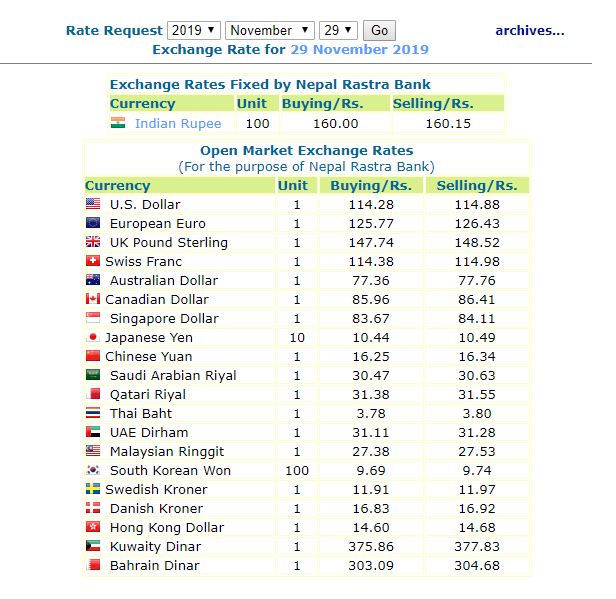 साथै आजको लागी राष्ट्र बैंकले बहराइ दिनार १ को खरिददर ३०३ रुपैयाँ ९ पैसा तथा बिक्रिददर ३०४ रुपैयाँ ६८ पैसा रहेको छ ।