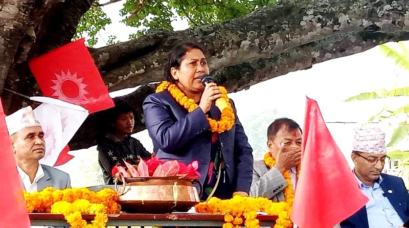 उनलाई प्रमुख प्रतिपक्षी नेपाली काङ्ग्रेसका उम्मेदवार खेमराज पौडेलले खादा ओढाएर बधाई दिएका छन् ।