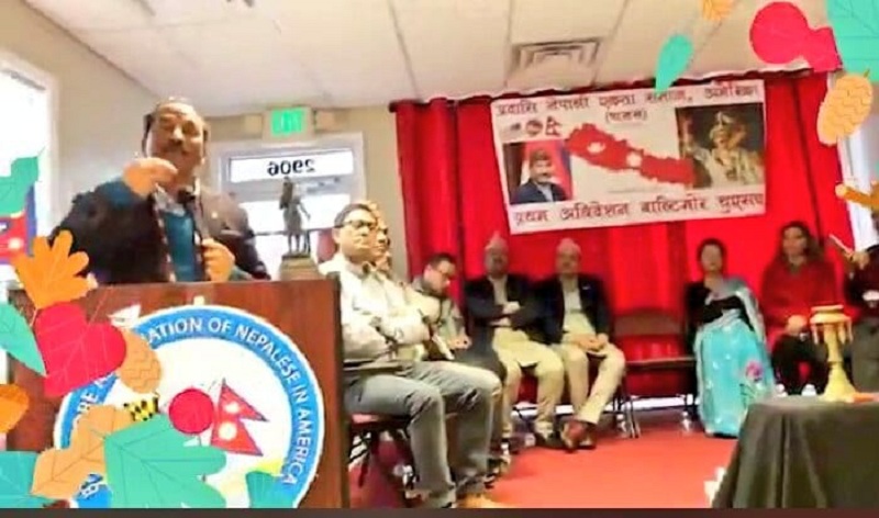 उहाँले राप्रपा निकट प्रवासी नेपाली एकता समाज अमेरिकाको बाल्टिमोरमा आयोजित तेश्रो अधिवेशनको समुदघाटन गर्दै नेपालको राष्ट्रिय एकताको आधारहरुको पहिचान र पुनःस्थापनामा आवश्यक परे हस्तक्षेपकारी भूमिका निर्वाह गर्न प्रवासी नेपालीलाई आग्रह गर्नुभएको छ ।