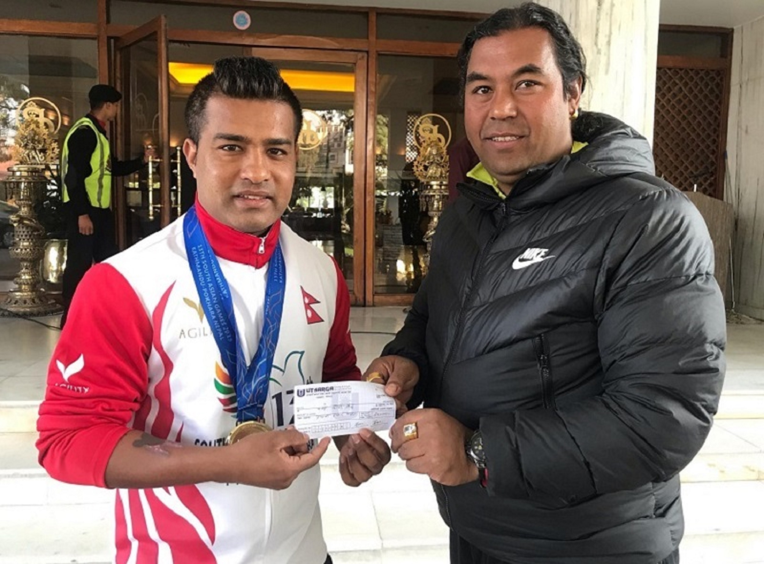 काठमाडौं । १३ औं दक्षिण एसियाली खेलकुद (साग) अन्तर्गत करातेमा दुई स्वर्ण पदक हात पारेका मण्डे काजी श्रेष्ठ नगदसहित सम्मानित भएका छन् ।
