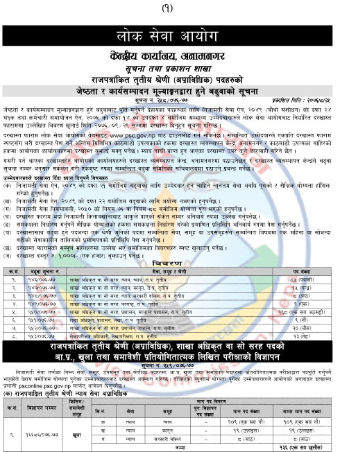 यस्तै महिला ७७, आदिबासी जनजाती ६१, मधेसी ५१, दलित २०, अपाङ्ग ११ र पिछडिएको क्षेत्रबाट १० जना माग गरिएको छ । यस्तै आन्तरिक बढुवाको सूचना पनि निकालिएको छ ।