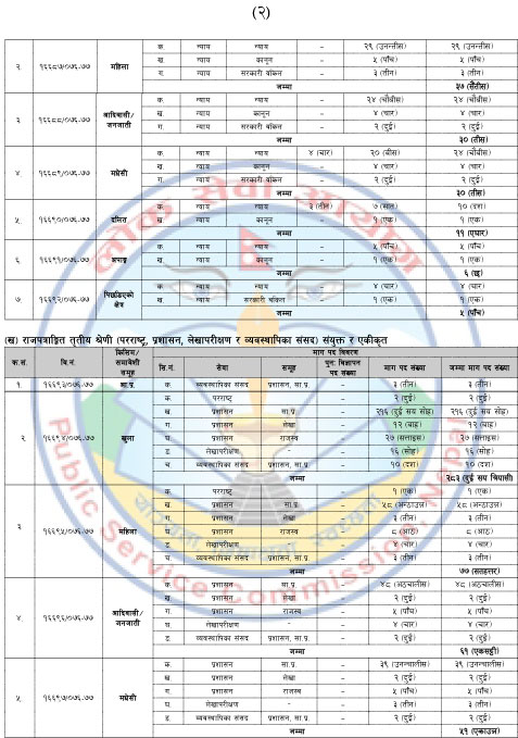 यसैगरी प्रशासन, परराष्ट्र, लेखापरीक्षण र व्यवस्थापिका संसदतर्फका विभिन्न सेवा तथा समूहमा खुलातर्फ २८३ जना अधिकृत माग गरिएको छ ।